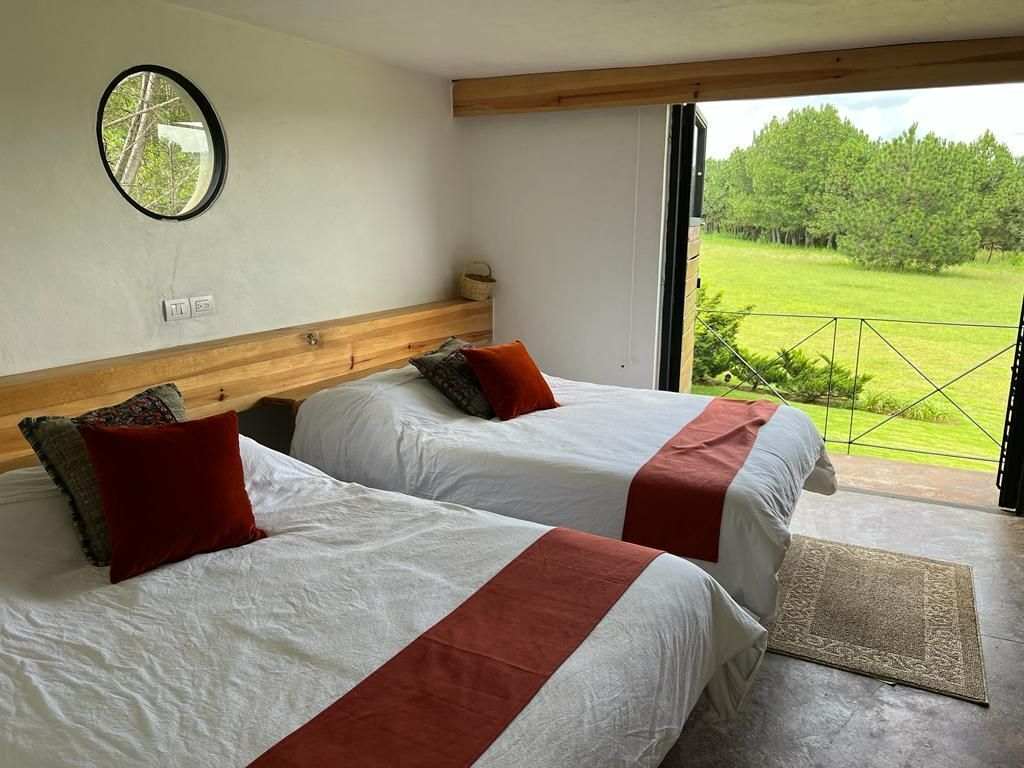 La cabaña cuenta con recámara principal con vestidor, baño y jacuzzi, Tapanco con dos camas, 2.5 baños, cocina integral, desyaunador, recibidor, sala, comedor, 1,360m2 jardín aprox, terraza cubierta, zona de asador, hamaca, chimenea, cuarto de lavado, calentador automático, hidroneumático, cisterna, tanque estacionario, acceso para discapacitados, área de estacionamiento, balcones, cava y bodega.