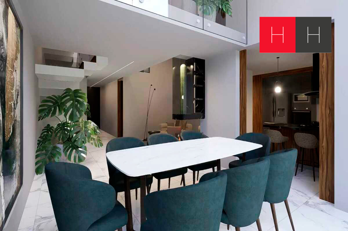 Primer piso.- Estacionamiento techado para dos autos, bodega, sala y comedor con doble altura, recamara con baño completo en planta baja, cocina integral con amplia alacena.