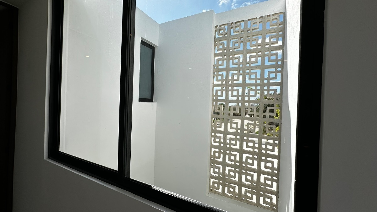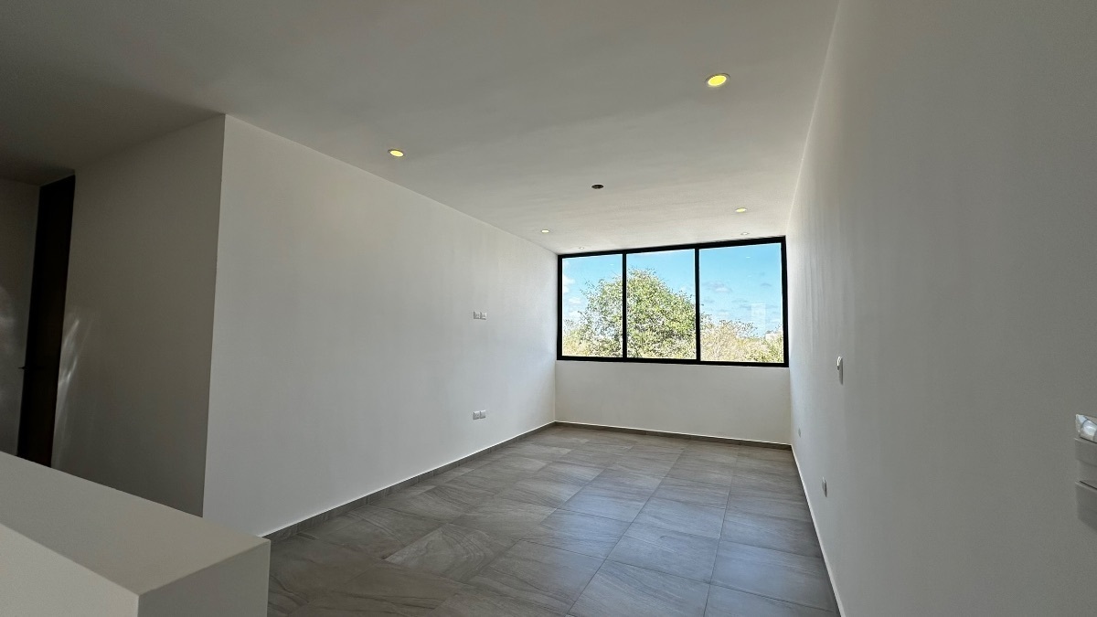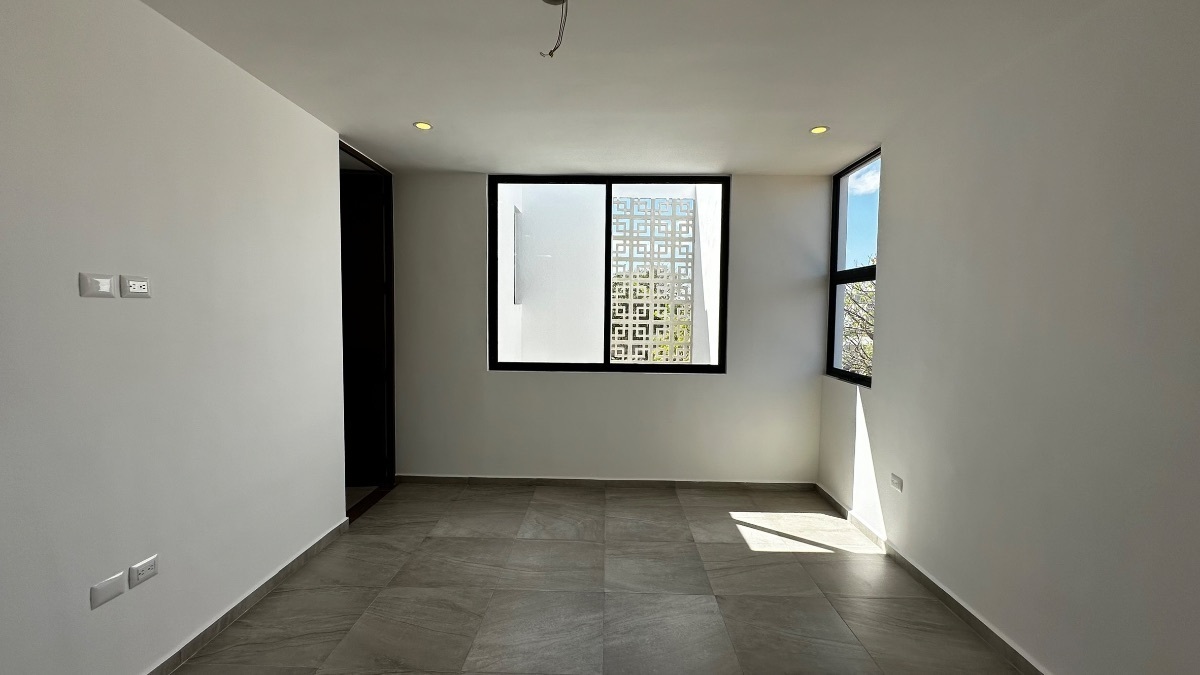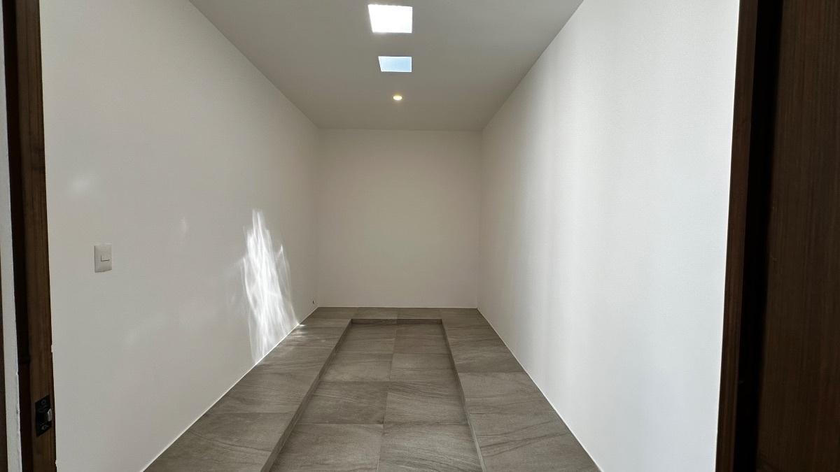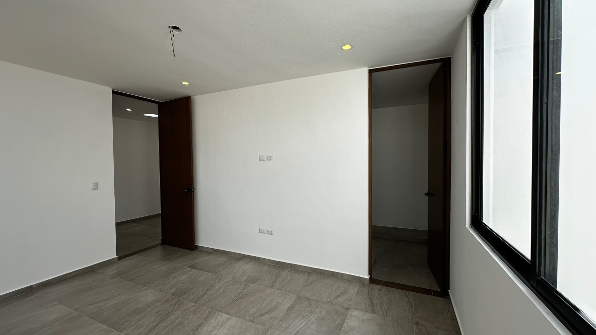 Habitación principal con clóset vestidor y baño completo, vista al jardín interno.