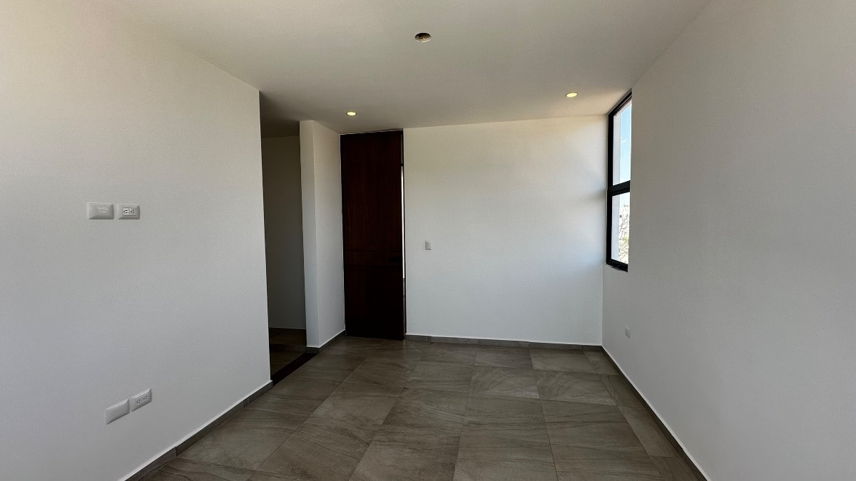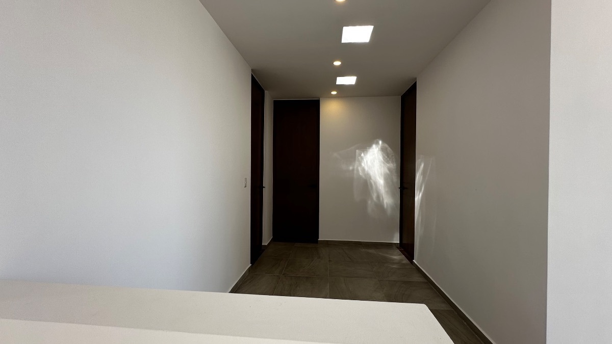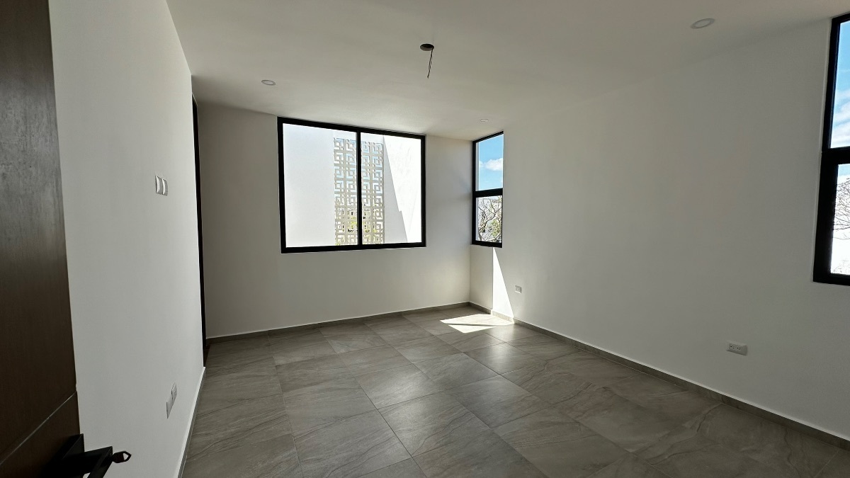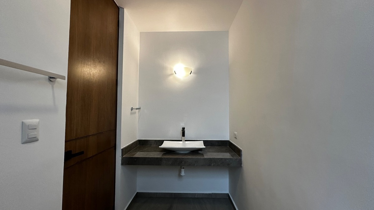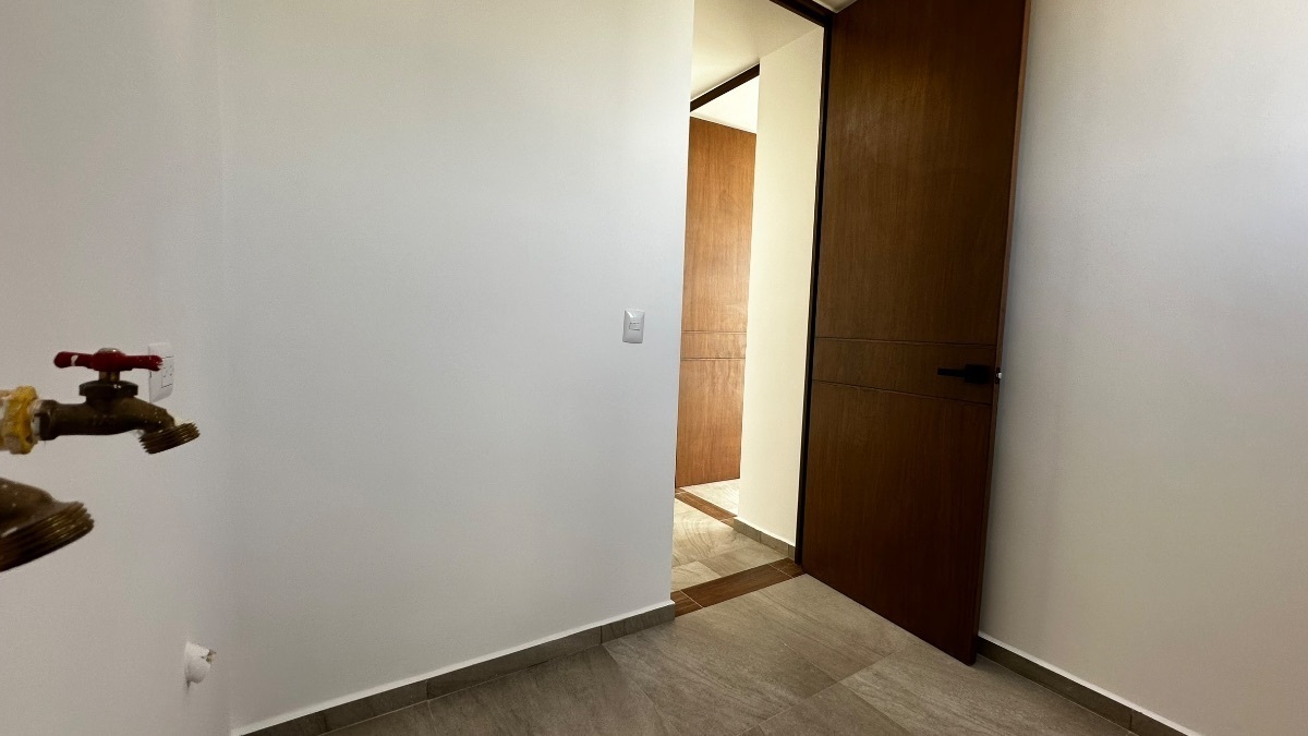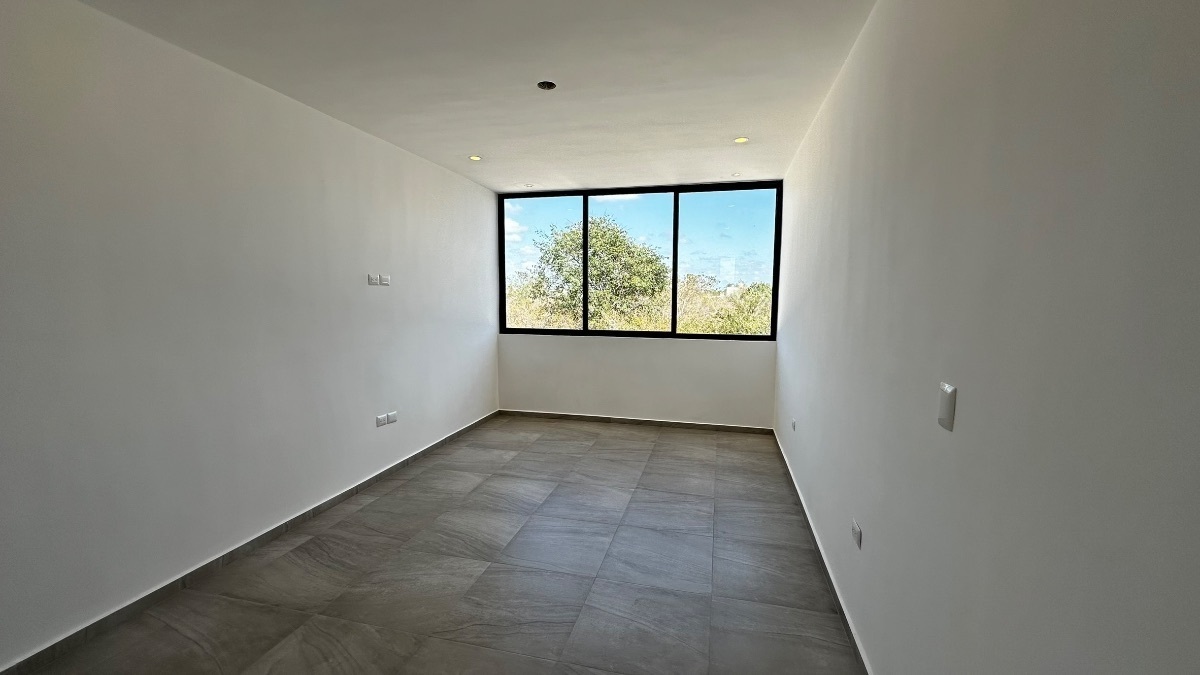 Habitación principal con clóset vestidor y baño completo, vista al jardín interno.