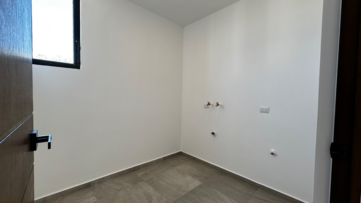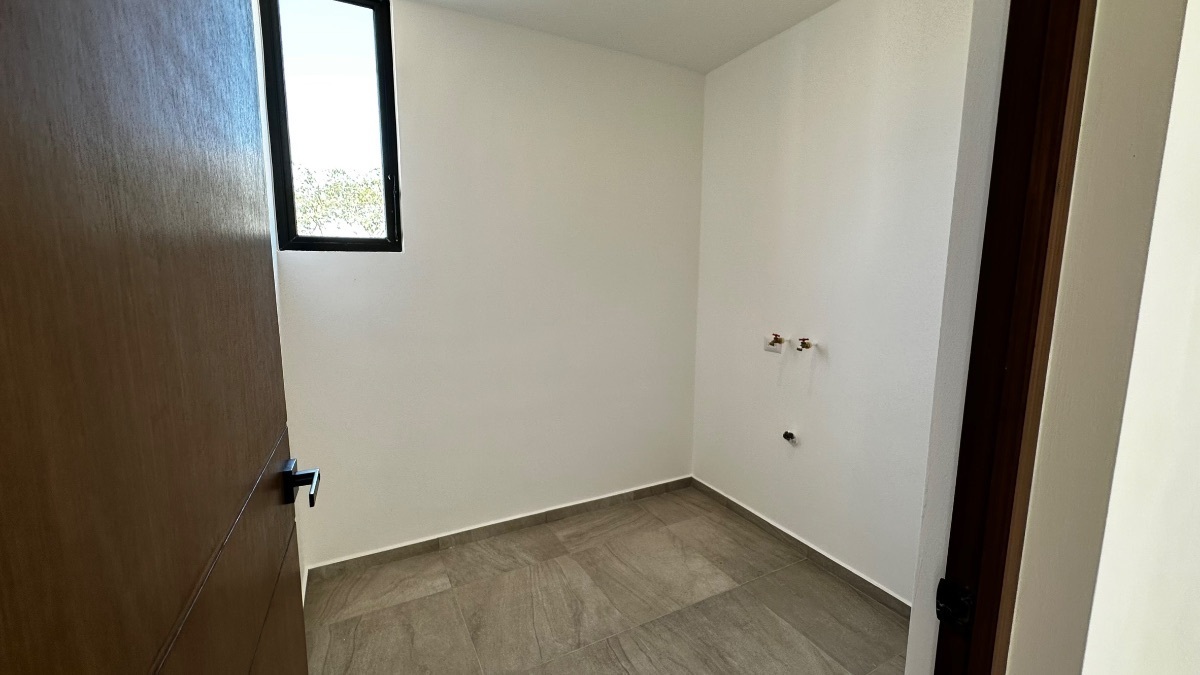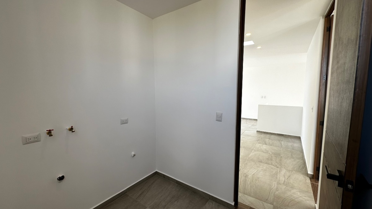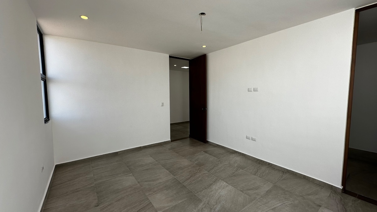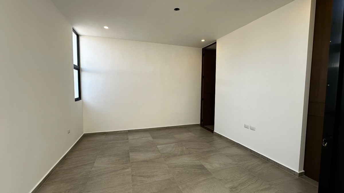 Habitación principal con clóset vestidor y baño completo, vista al jardín interno.