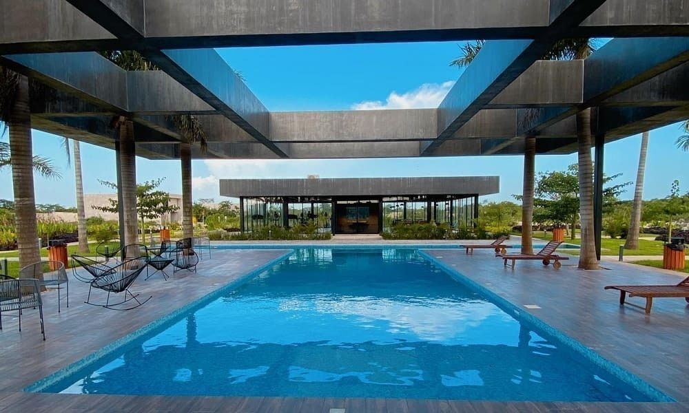 Piscina con acabado chukum, lámpara de led, pozo de llenado de 18 mts con bomba sumergible y pozo de desagüe de 12 mts.