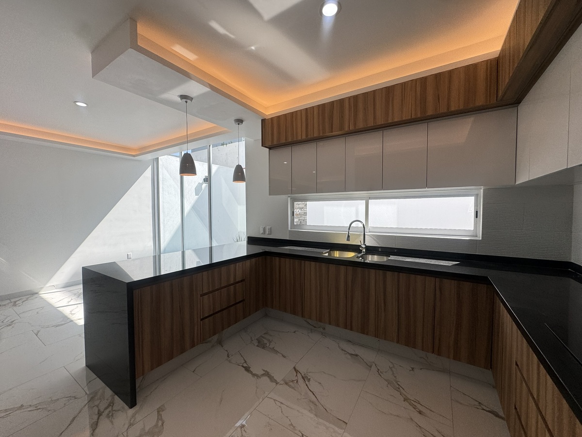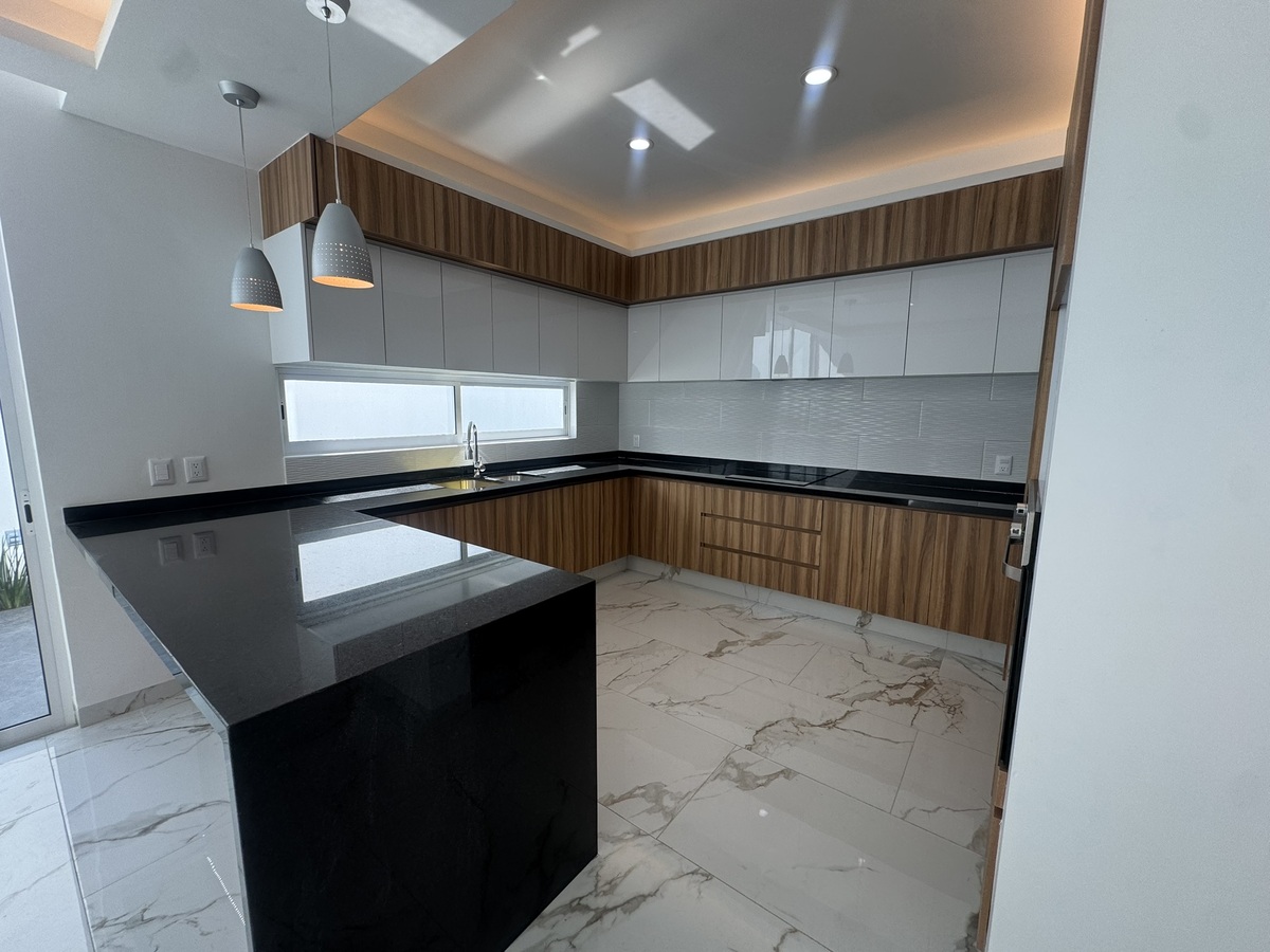 - Cocina con cubierta de granito totalmente equipada, con alacenas alto brillo e iluminación.