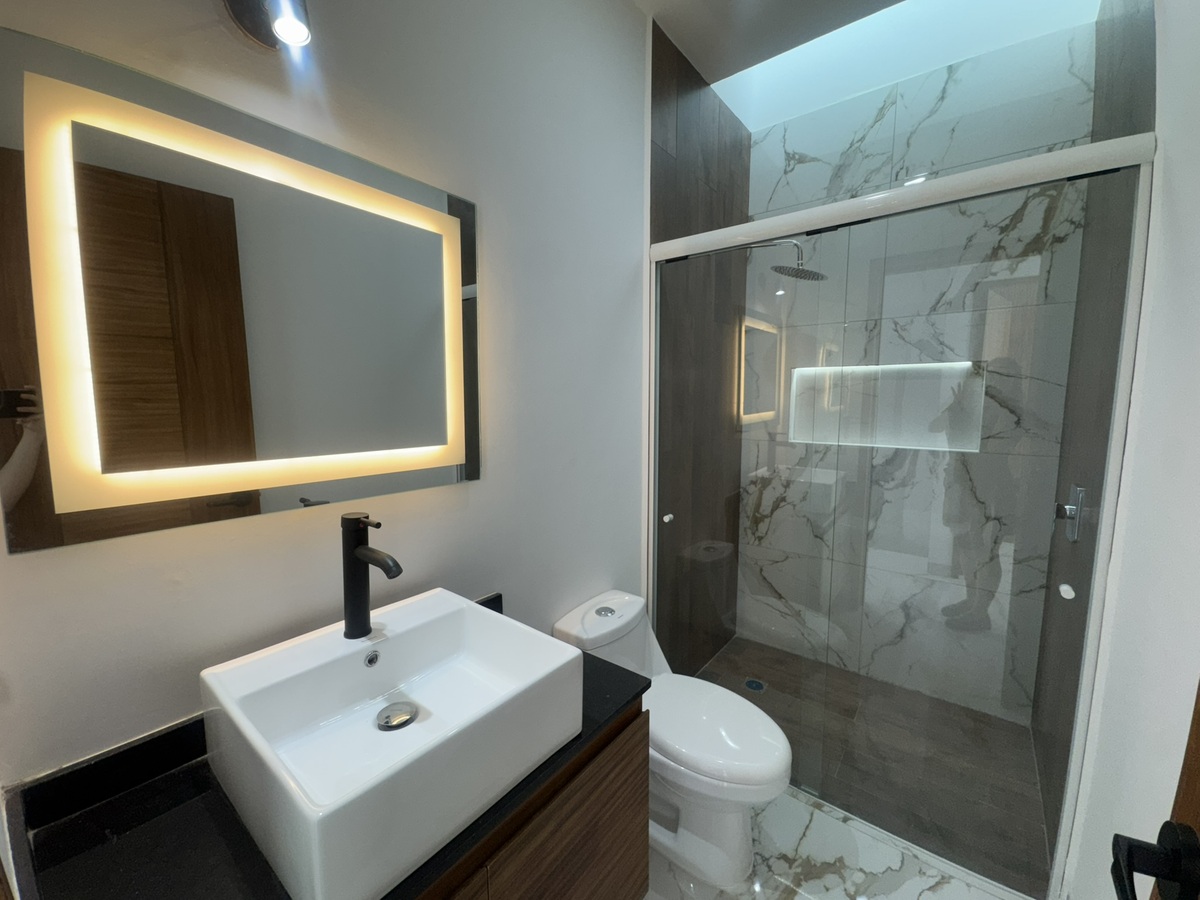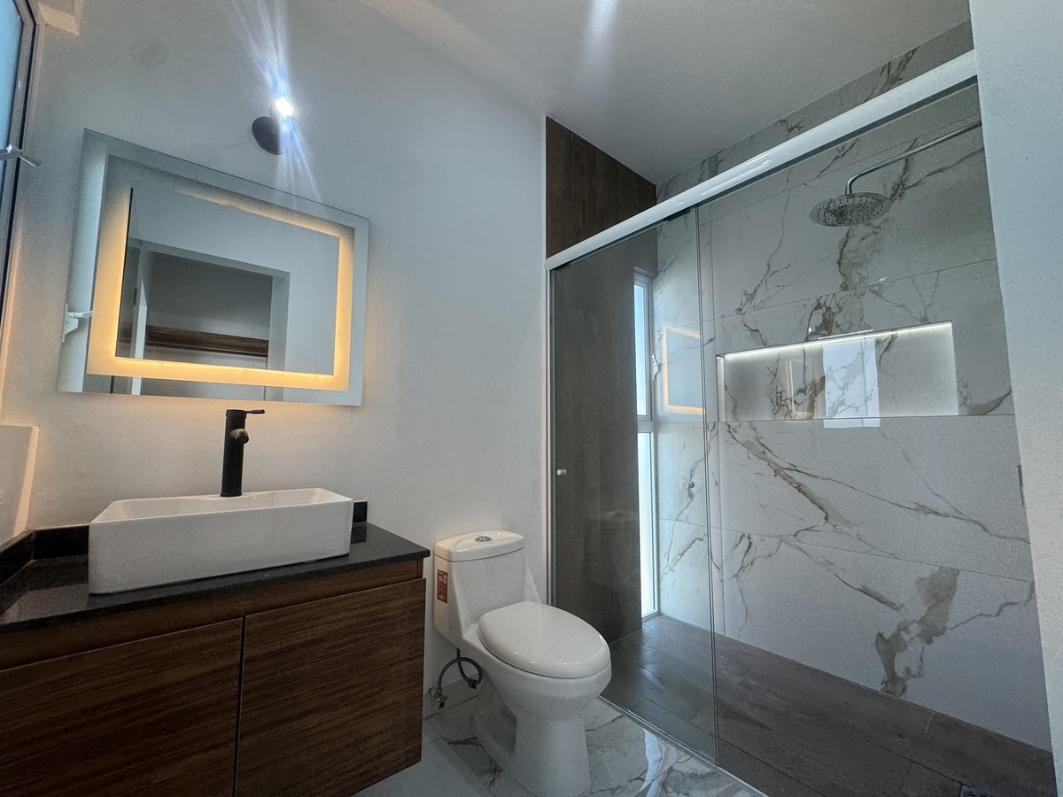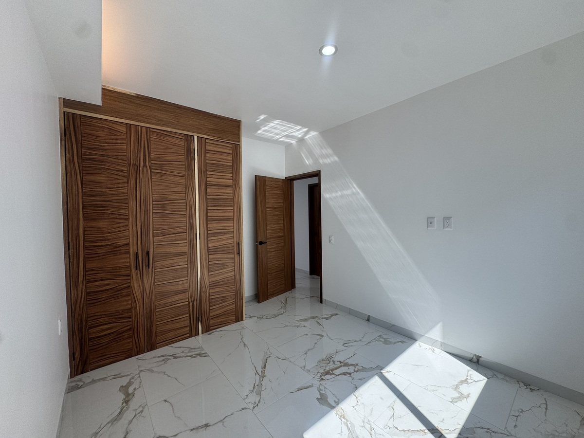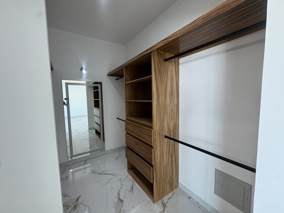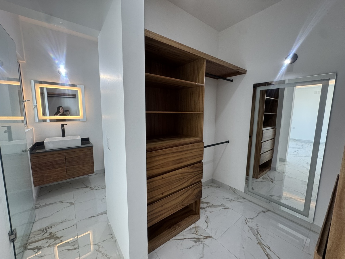 - Recamara principal balcón con vidrios templados color tintex, vestidor con madera de parota con espejo con luces leds, baño completo