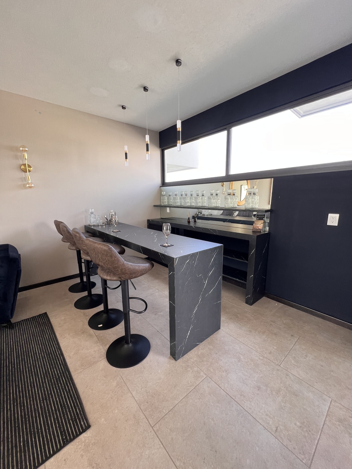 Tiene un espacio para un bar que queda perfecto con su sala y comedor.