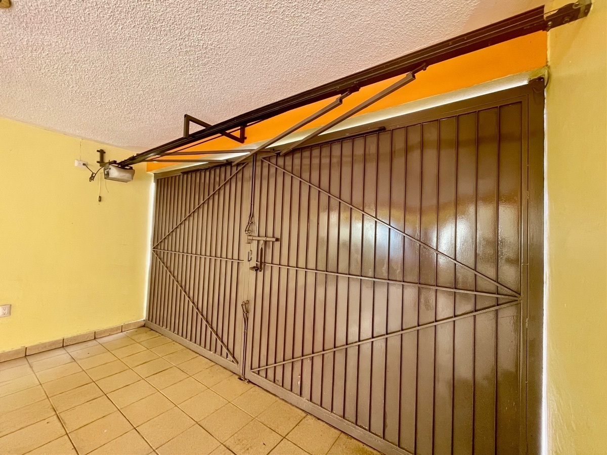 Llegue a casa y con un clic de un botón, ¡voilá! Abra su garaje techado de doble puerta, para preservar su vehículo seguro y sombreado.