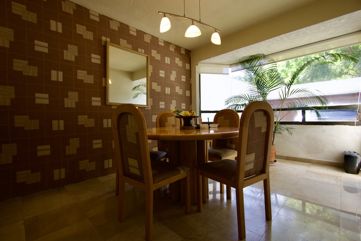 En el nivel de acceso se encuentran la sala, comedor, área de televisión, oficina, cocina con desayunador y comedor adicional, todos con excelente iluminación natural y salida al jardín.