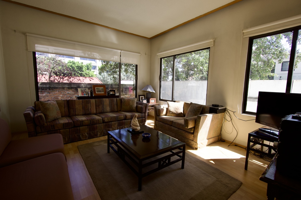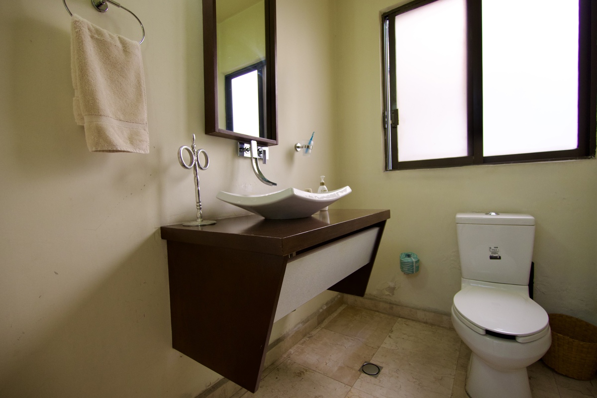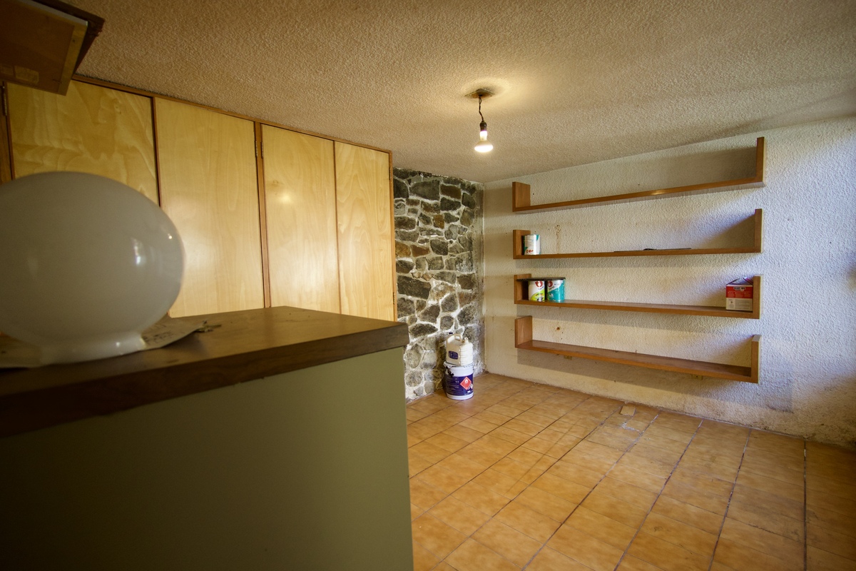 En el nivel inferior se ubican el área de lavado, cuarto de servicio, una pequeña bodega y acceso directo al jardín. También puede accederse al jardín desde la sala.