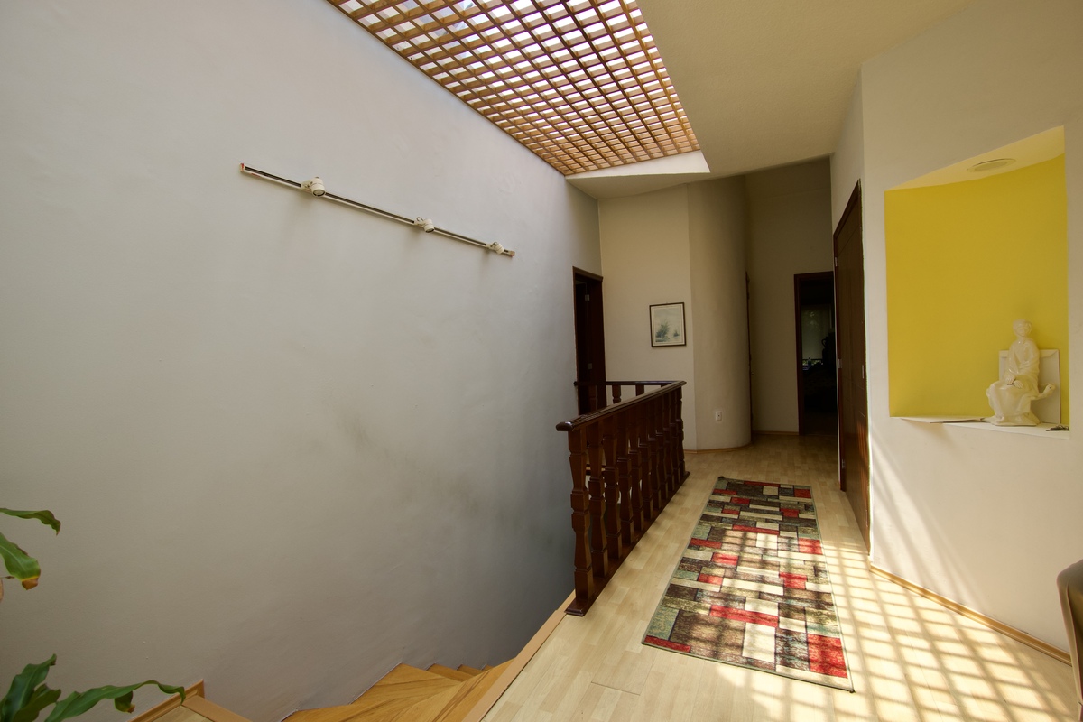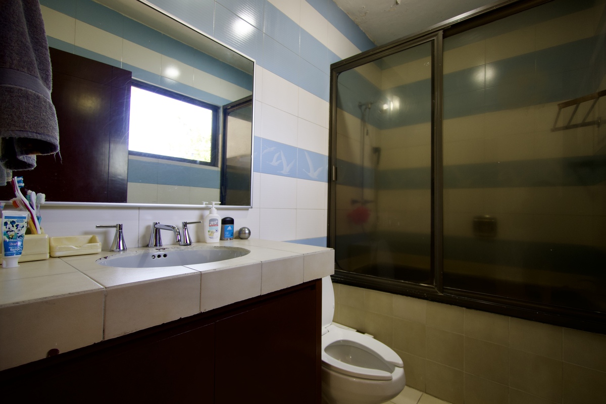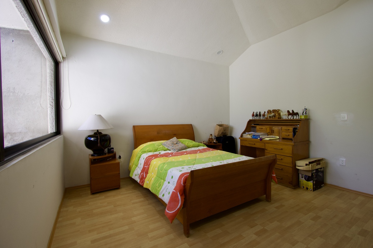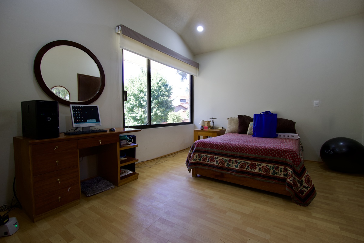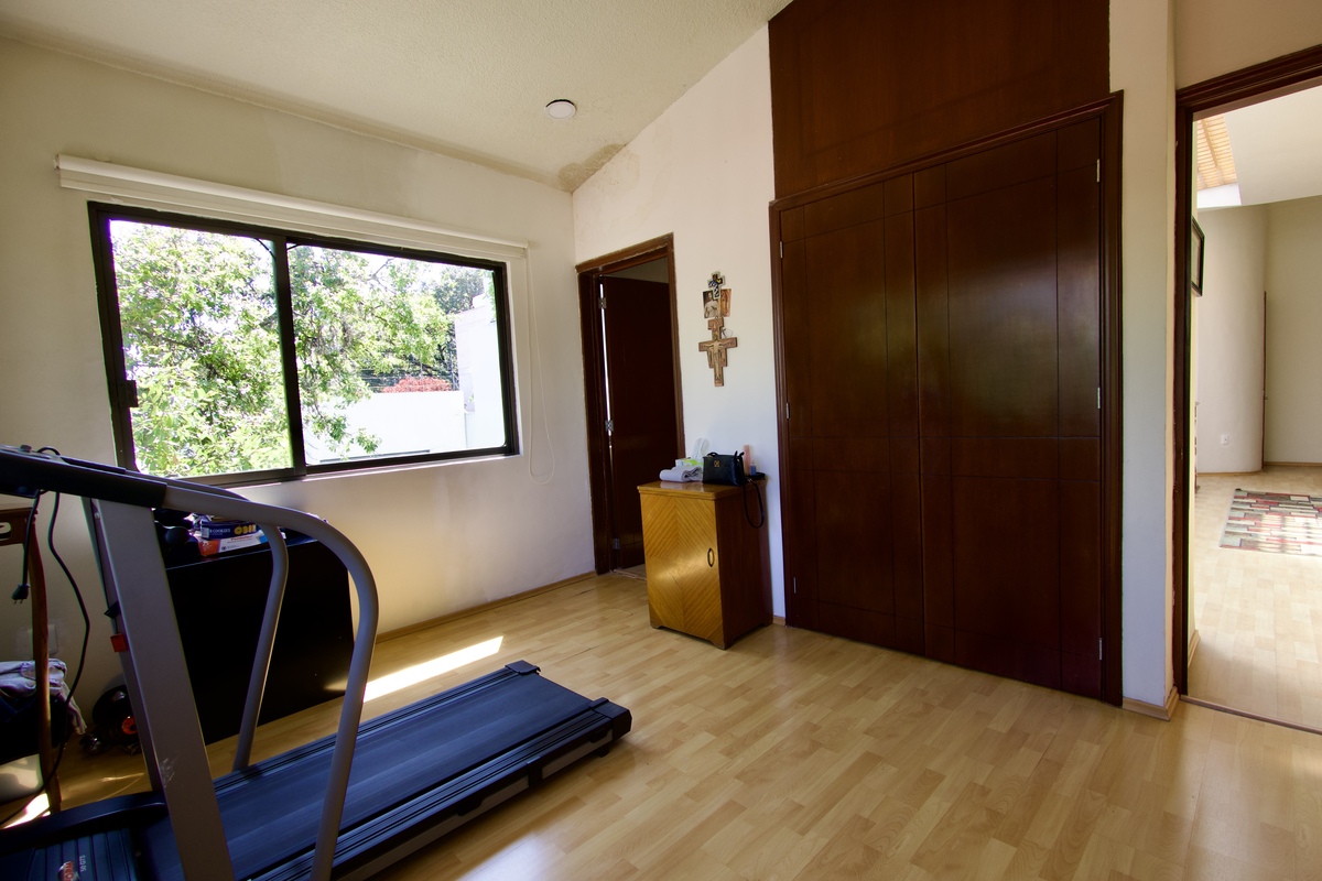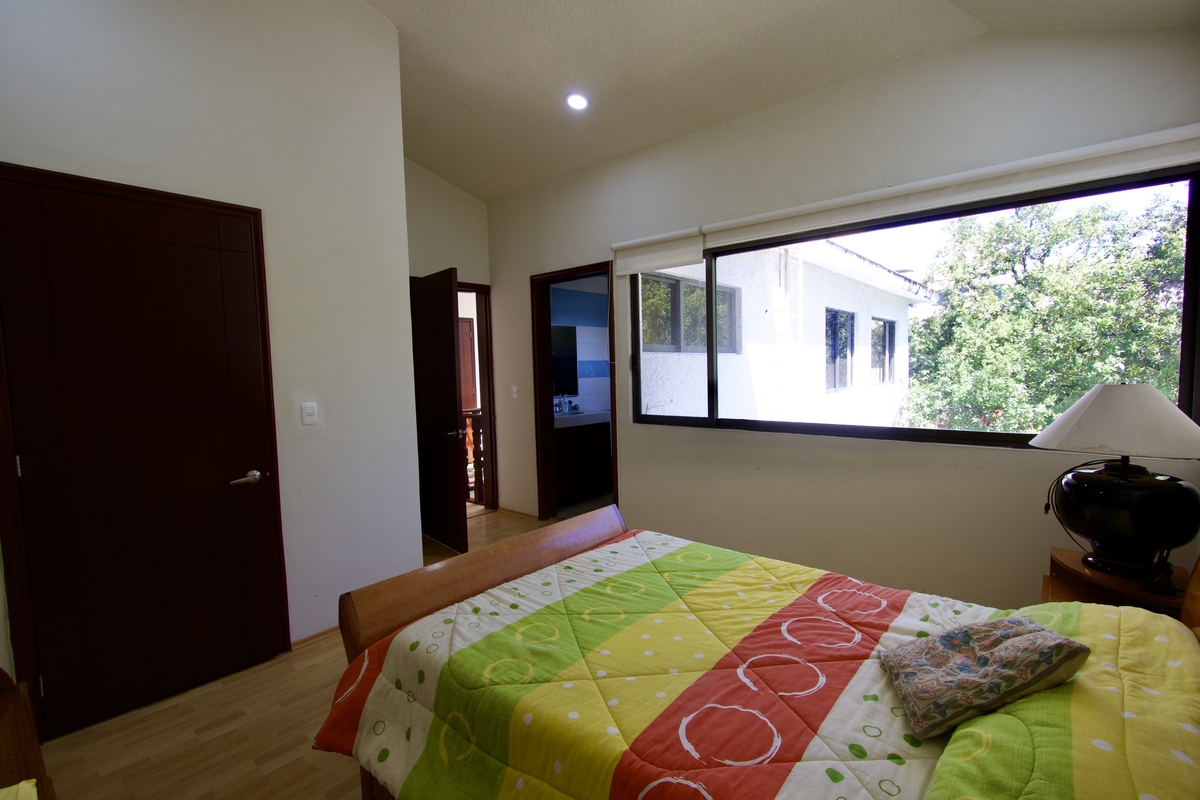 En la planta alta hay cuatro recámaras, cada una con baño completo y clóset, además de una sala de televisión familiar. La recámara principal cuenta con vestidor.