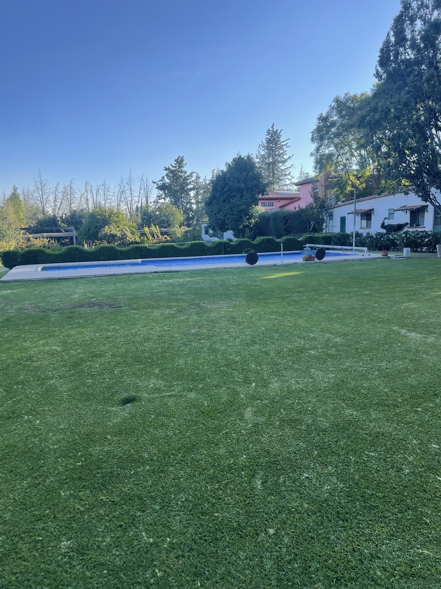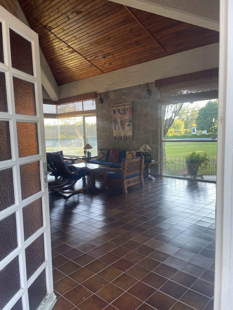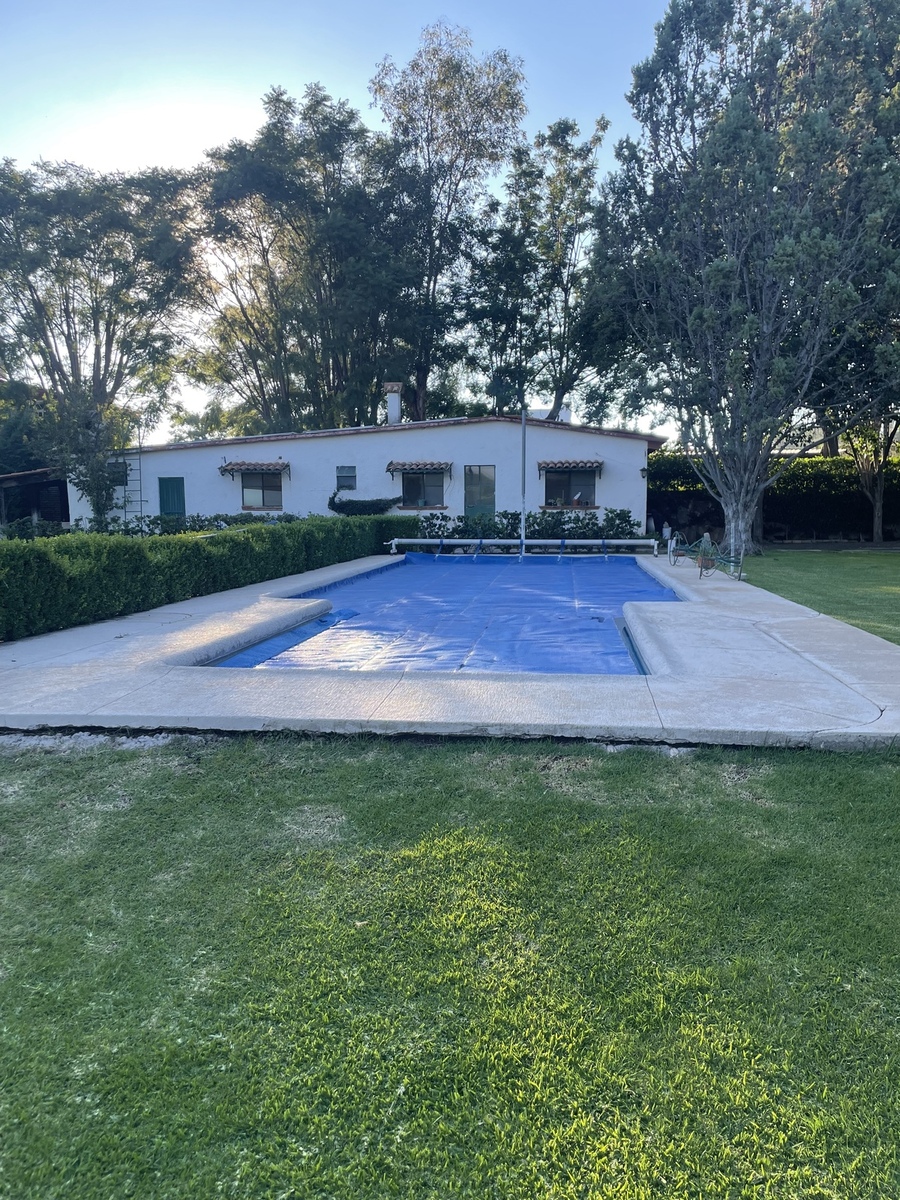 Casa completamente amueblada en Renta en Granjas Residenciales de Tequisquiapan de una sola planta con 411m2 de construcción y un terreno de 5000m2 de superficie con cancha de tenis, alberca, viñedo con pozo, árboles frutales y dos bodegas muy grandes.
