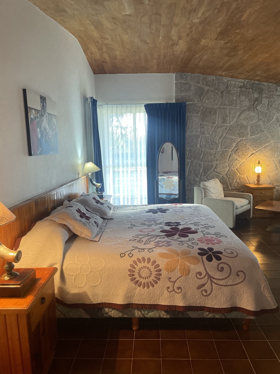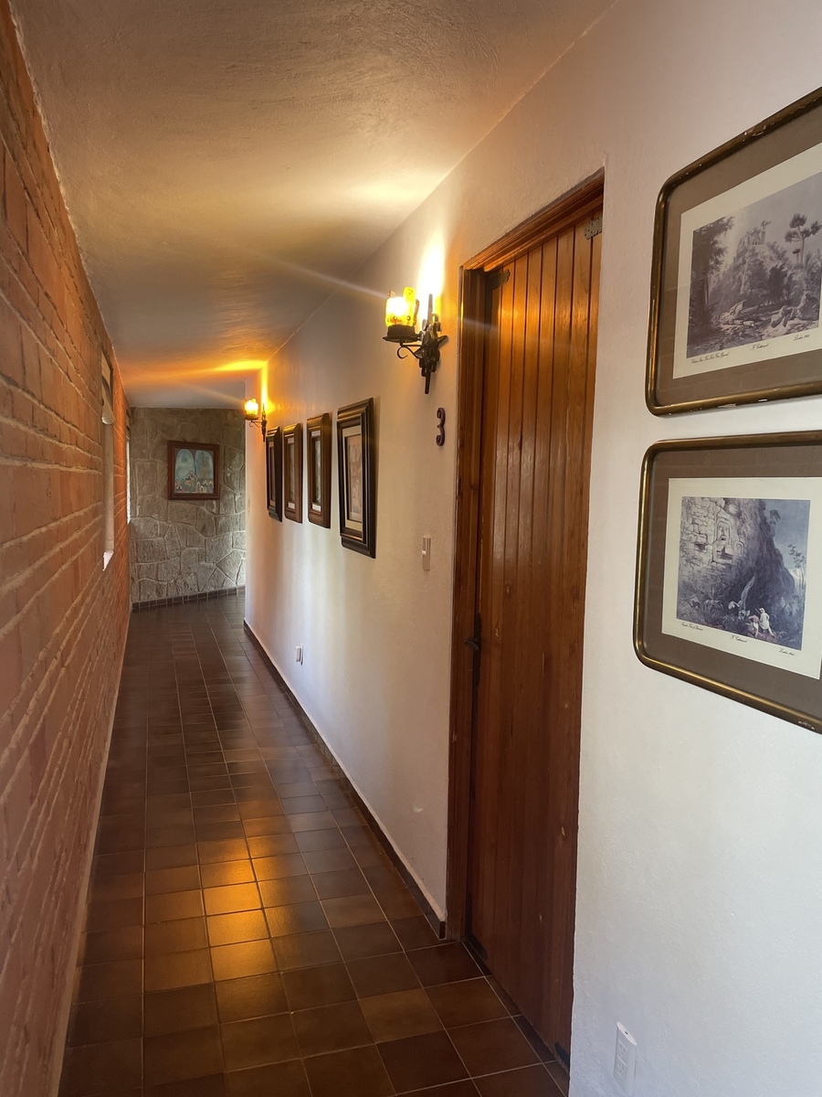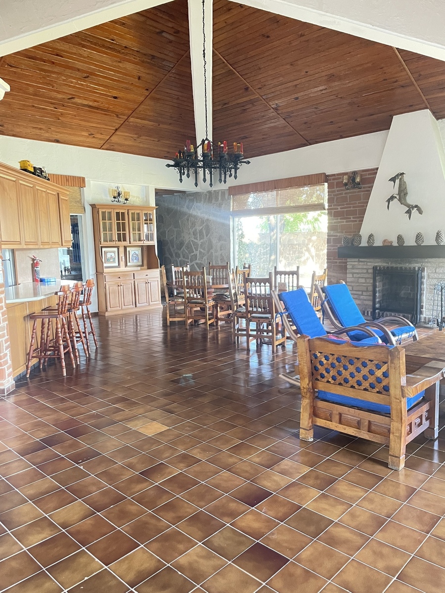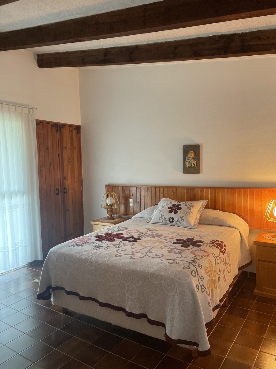 Casa completamente amueblada en Renta en Granjas Residenciales de Tequisquiapan de una sola planta con 411m2 de construcción y un terreno de 5000m2 de superficie con cancha de tenis, alberca, viñedo con pozo, árboles frutales y dos bodegas muy grandes.