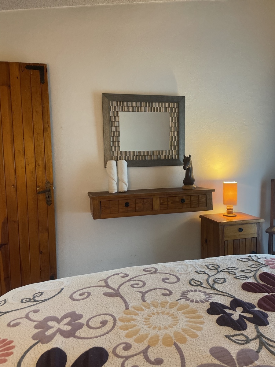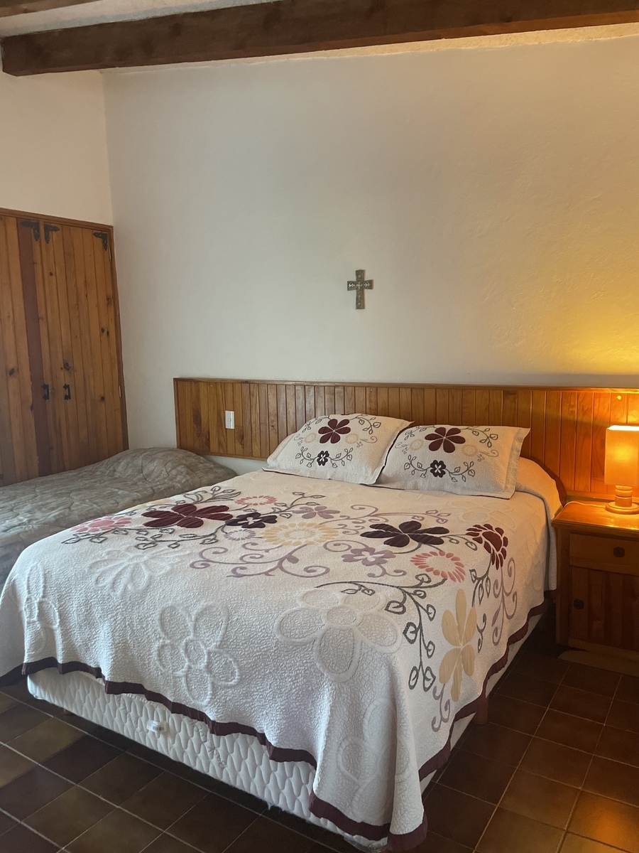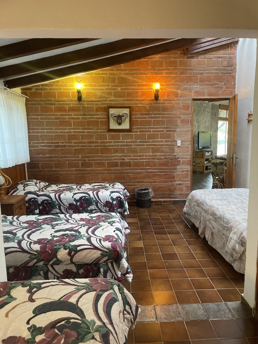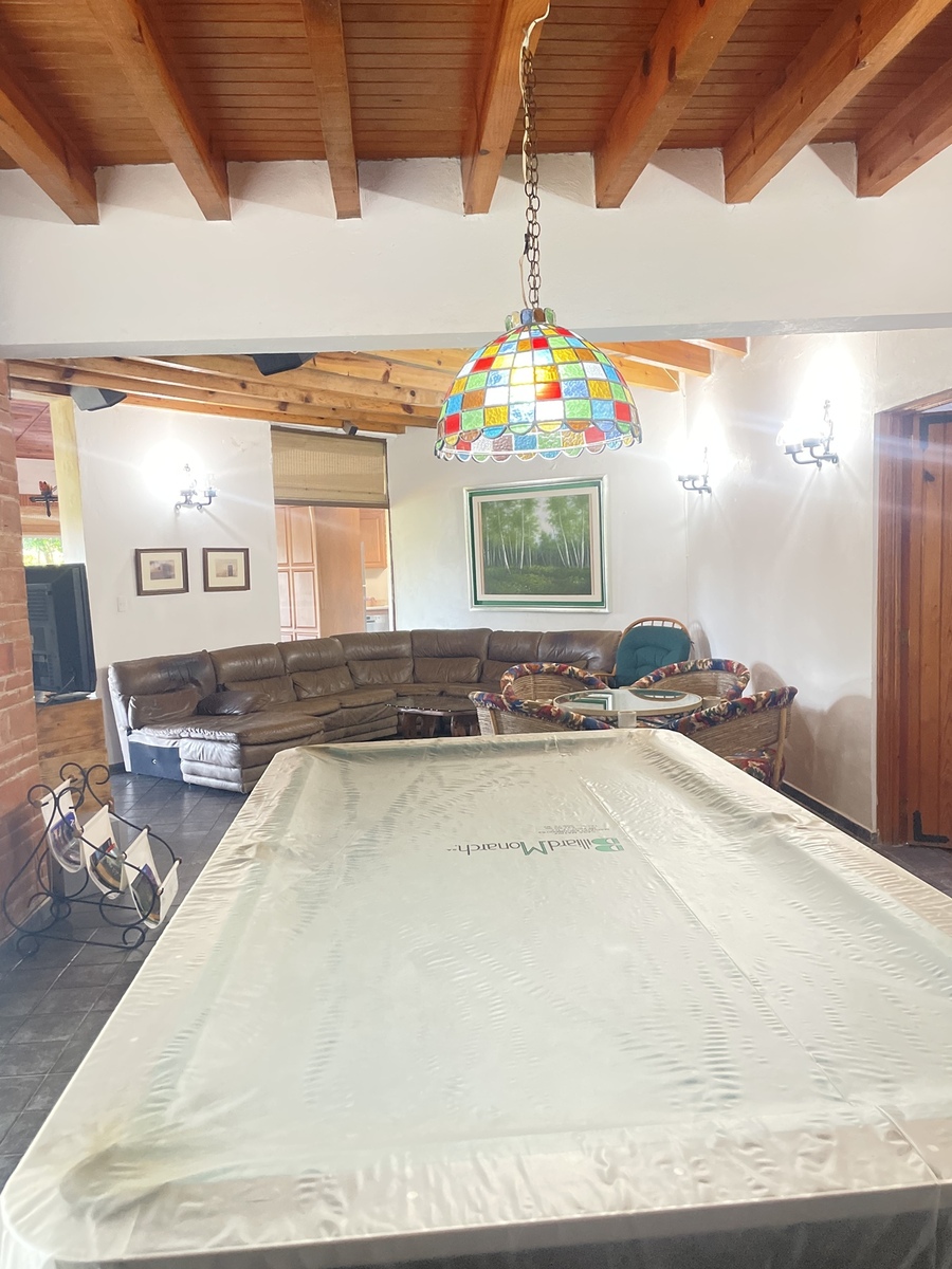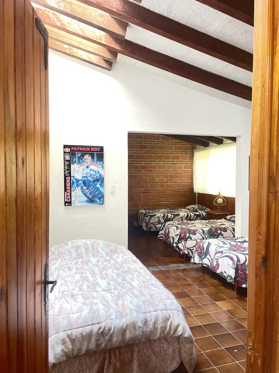Tiene una sala de juegos con mesa de billar y una recámara con 5 camas individuales y un baño completo.