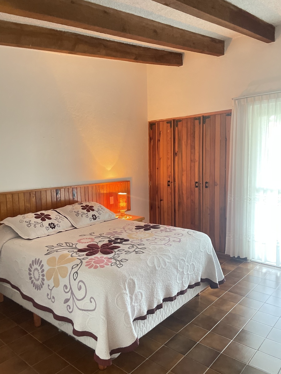 La casa consta de 5 recámaras con vista a la alberca, la principal con tina de baño, todas comunicadas un un pasillo.