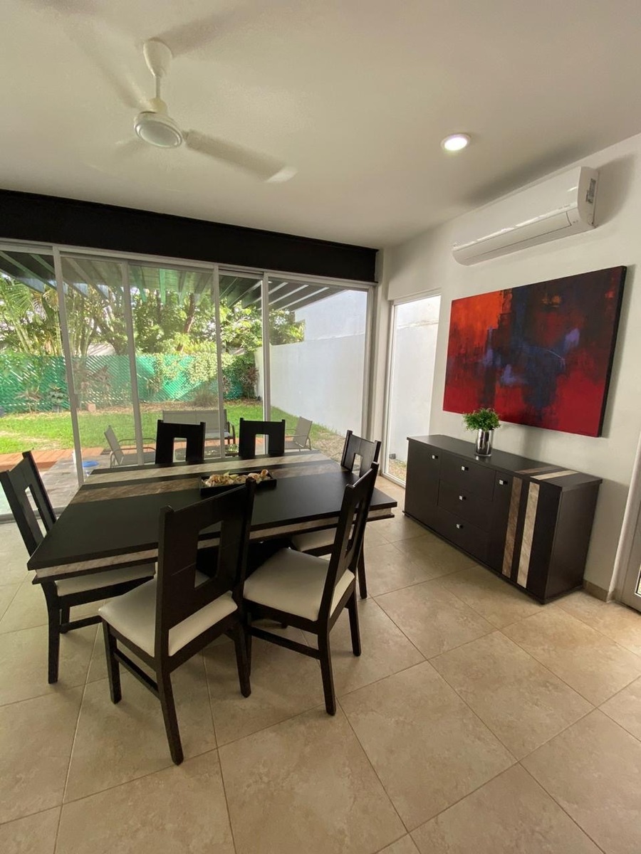 Casa de 3 quartos com quarto de serviço em condomínio para alugar por R$29.000 em Temozón Norte, perto da Escola Agora.