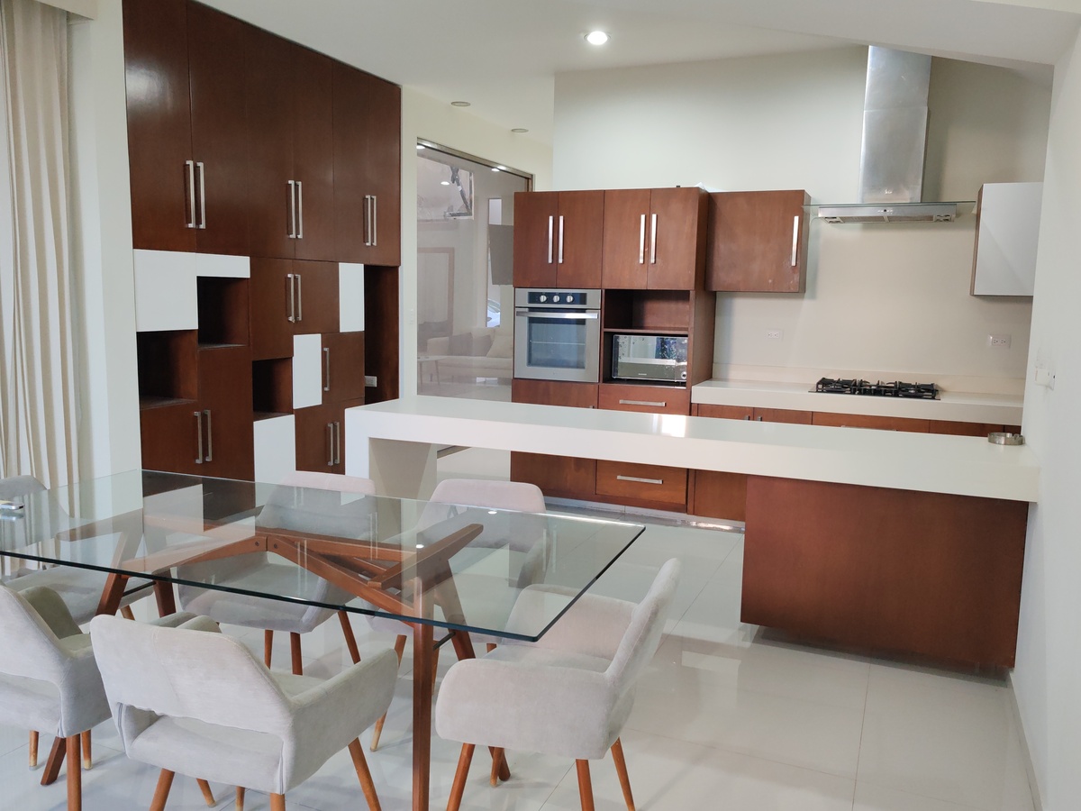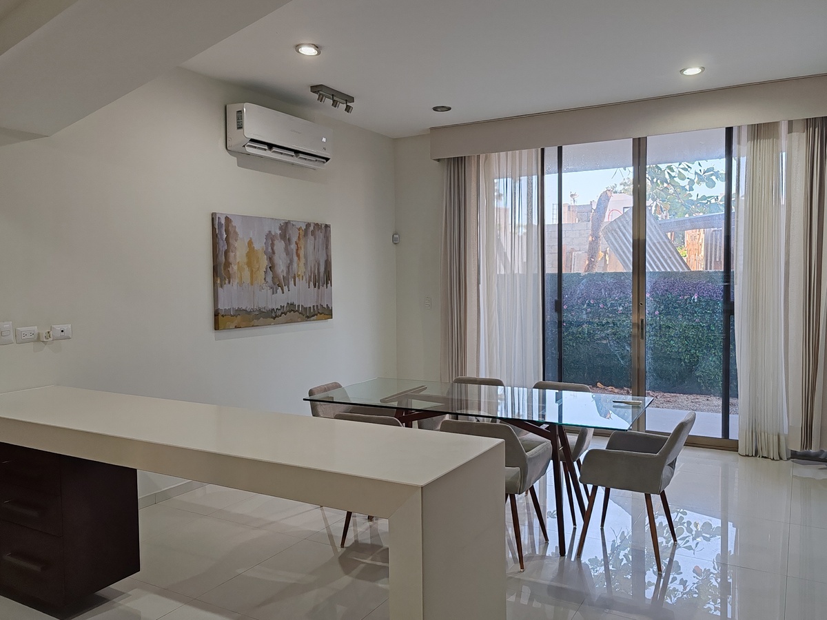 Contrato mínimo de 1 ano.Casa Amueblada en Renta en una de las zonas mas exclusivas de la isla, con campo de Golf, Casa Club con Alberca, Vigilancia, etc.