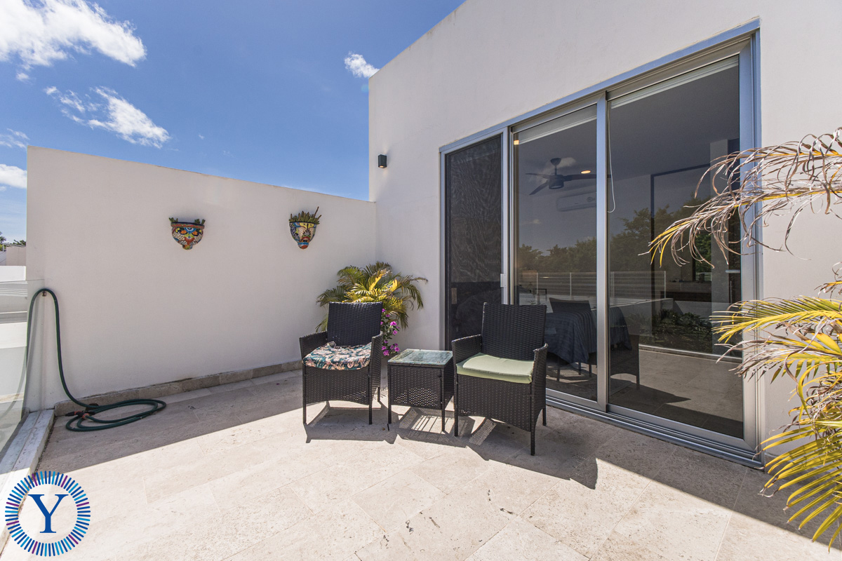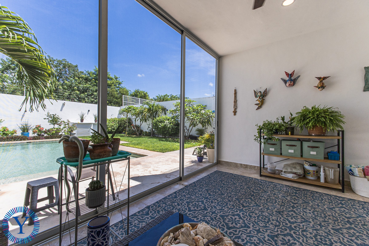 Perfecta para disfrutar del clima de Yucatán, la propiedad incluye una terraza cerrada que se conecta a una gran piscina filtrada, lo que la convierte en un refugio ideal para relajarse o celebrar reuniones.