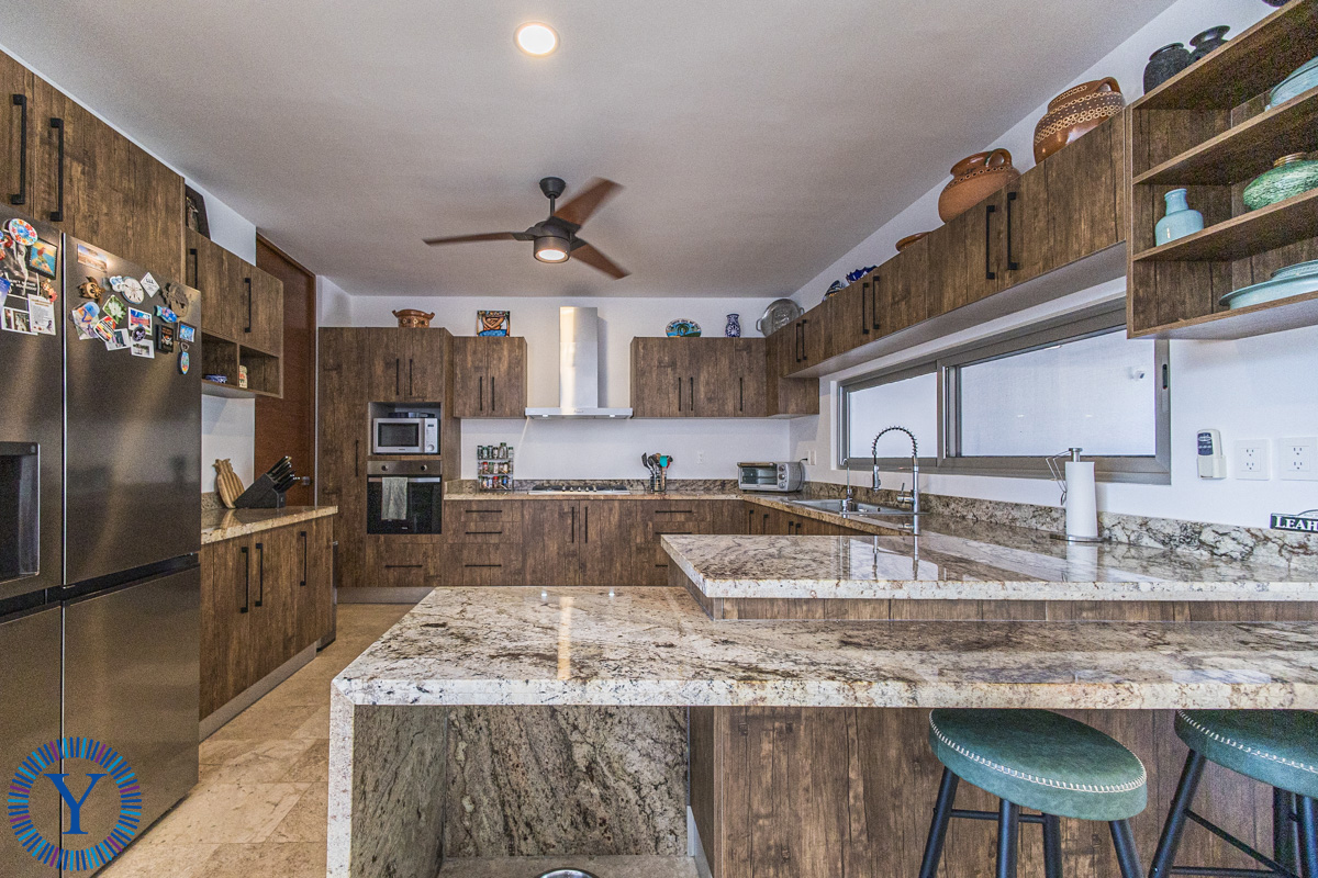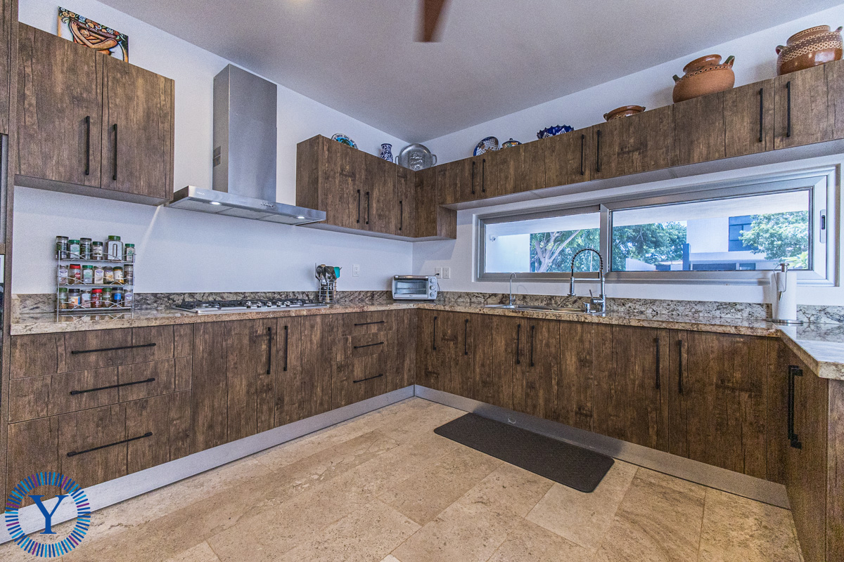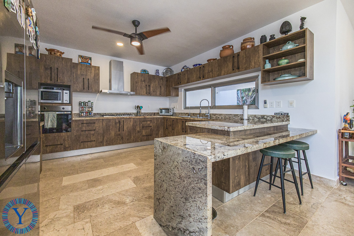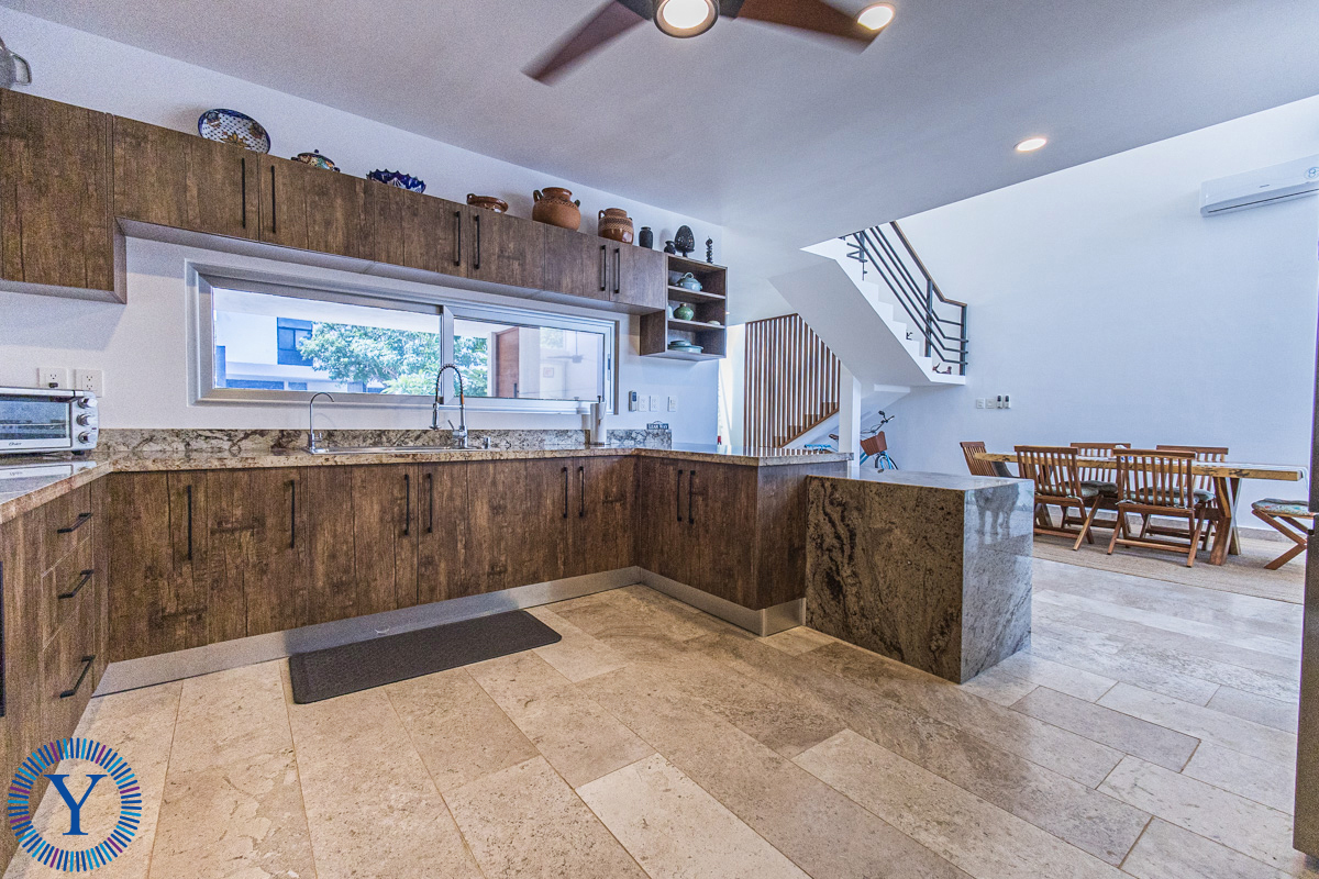 Entra por el acogedor vestíbulo y descubre una amplia sala de estar de concepto abierto con techos de doble altura, que crean un ambiente luminoso y aireado. La moderna cocina es de generosas dimensiones e ideal tanto para la vida familiar como para el entretenimiento. Un cuarto de lavado a lado de la cocina añade comodidad y funcionalidad.