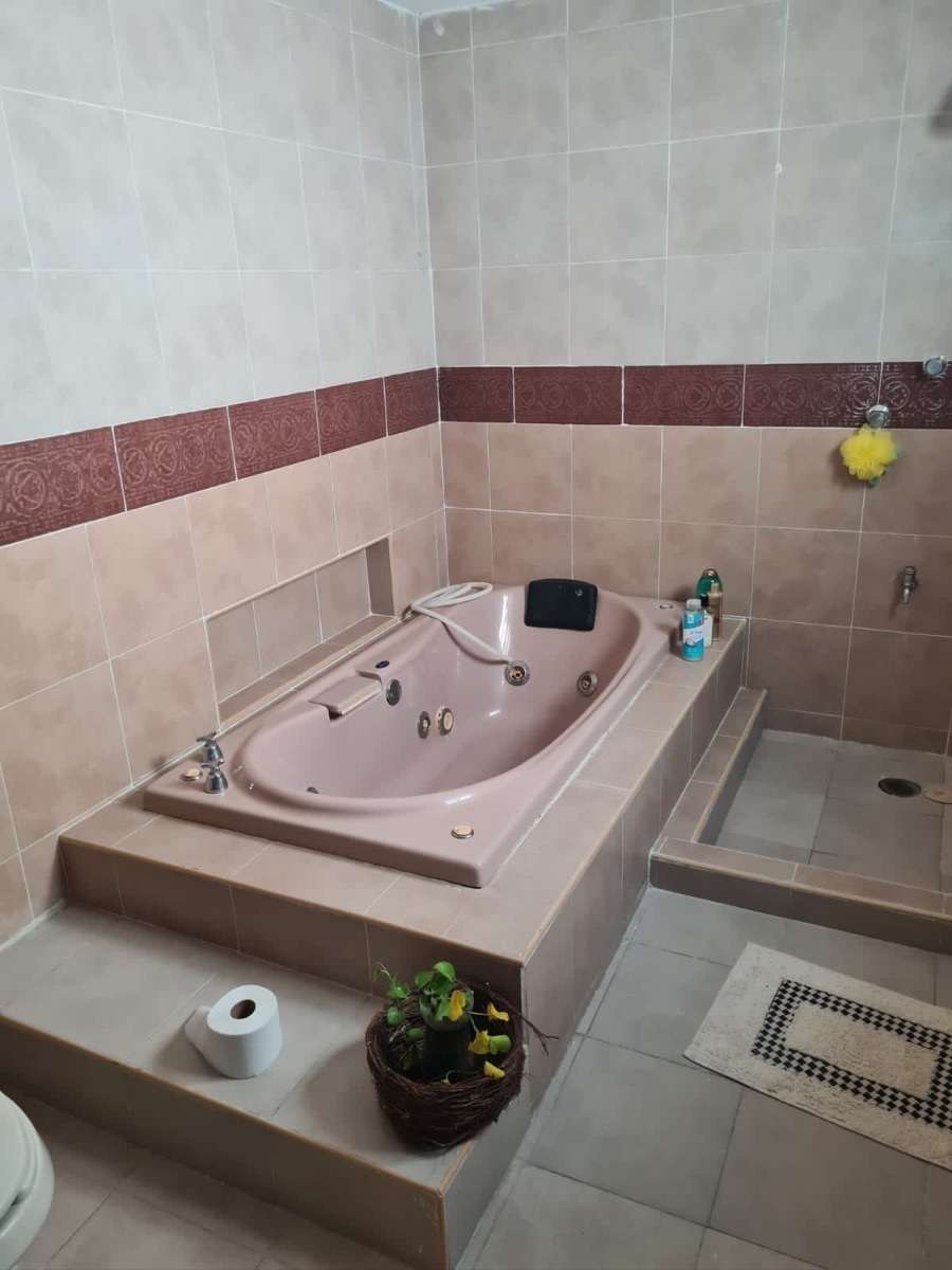 quarto principal com varanda, ventilador, ar condicionado, banheiro completo, com banheira de hidromassagem.