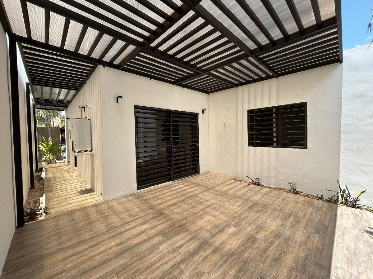 โ—ฝ Terraza posterior techada con estructura metรกlica y policarbonato.