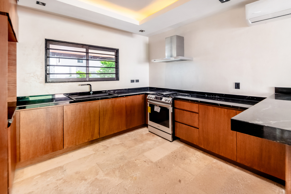 Cocina integral totalmente remodelada, equipada con estufa con horno y airfryer, doble tarja de cuarzita y amplias gavetas