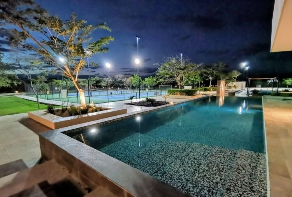 Cuenta con Casa Club equipada, gimnasio, alberca semiolímpica, cancha de pádel, tenis y fútbol, así como zonas recreativas y espacios para eventos sociales. Su ubicación estratégica permite fácil acceso a universidades, hospitales y centros comerciales importantes como The Harbor y La Isla.