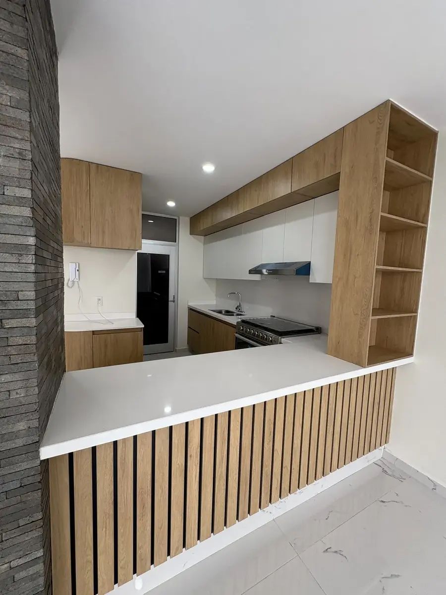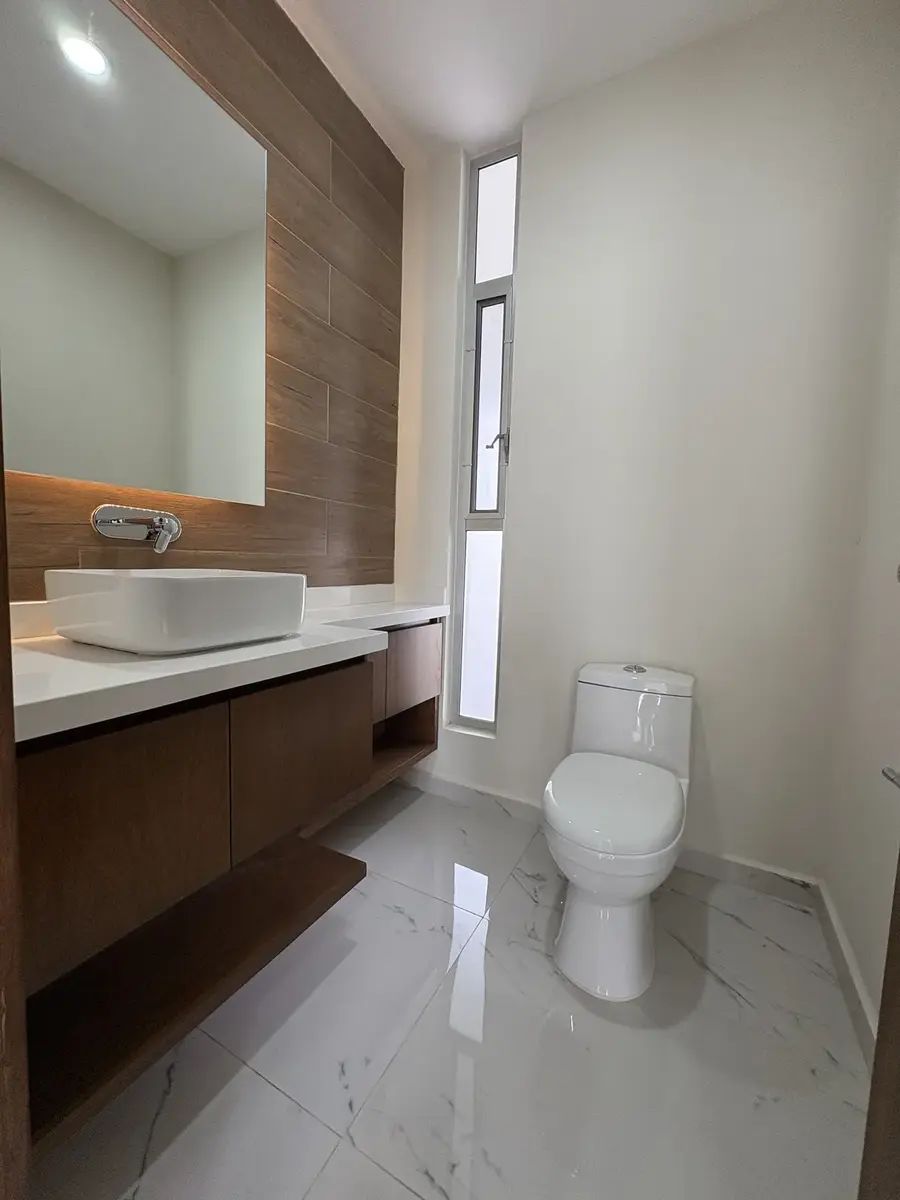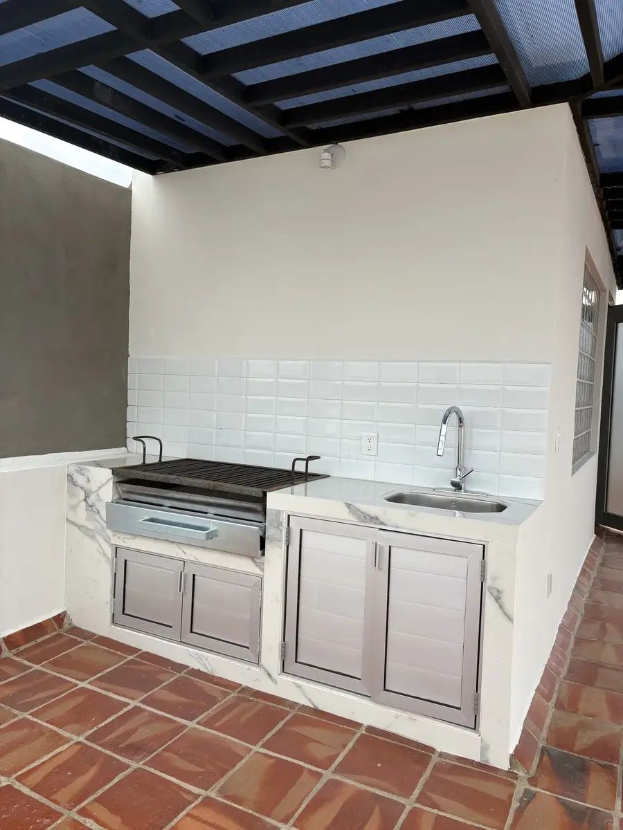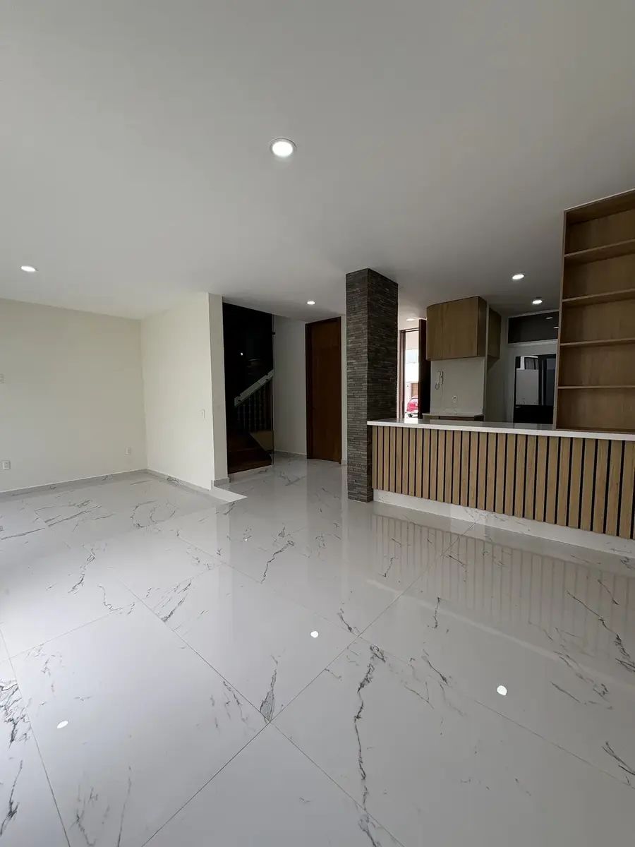 La planta baja cuenta con una hermosa cocina integral con cubierta de granito , sala comedor con desnivel, pisos de porcelanato de 60x1.20 y