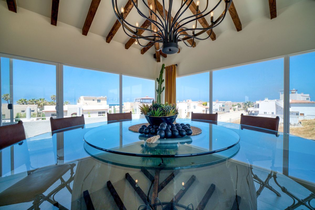- Sala de jantar com vistas para o oceano e montanhas