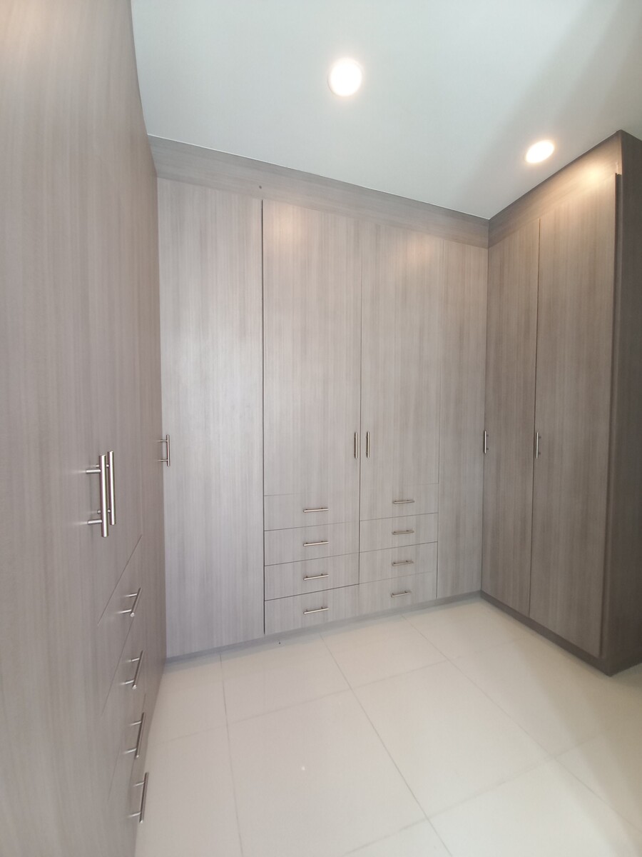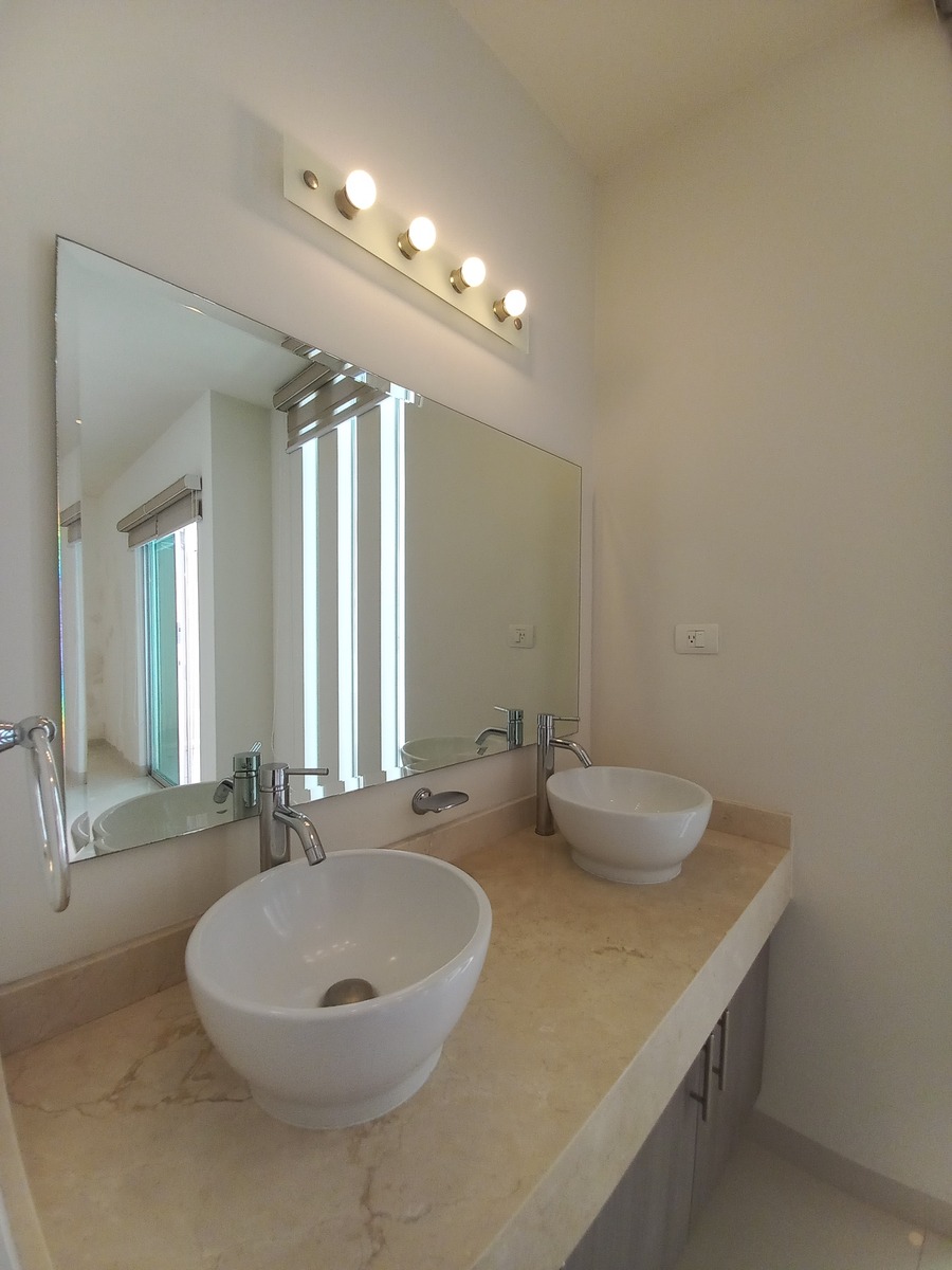Recámara principal con vestidor, doble lavabo y baño completo
