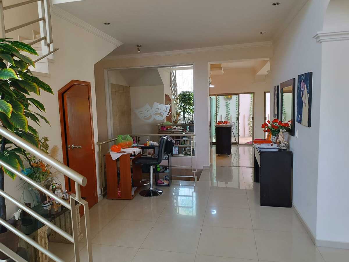 Planta baja: Sala, comedor, cocina integral, medio baño de visitas, área de lavado, cochera 2 autos. Planta alta: Estar de T.V., 3 recámaras cada una con baño completo. Sótano: estudio