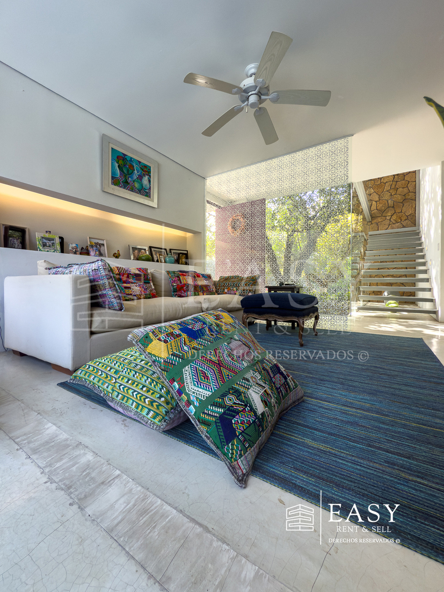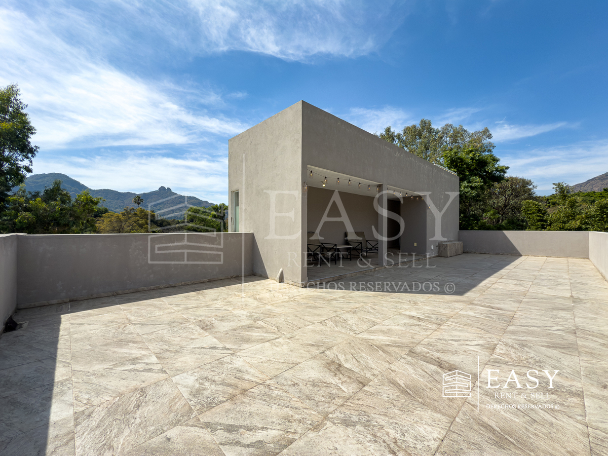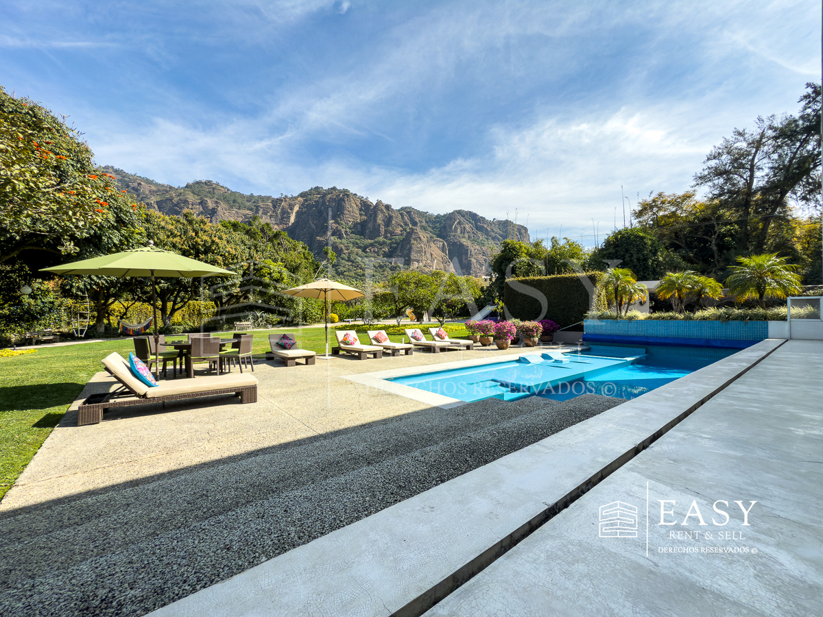 A casa principal conta com 3 quartos, incluindo uma suíte com escritório, closet, banheiro completo e terraço privativo. Os outros dois quartos também têm closet e banheiro completo. A espaçosa sala de estar, a sala de jantar, a sala de TV e um grande terraço com vistas panorâmicas do Tepozteco fazem desta casa um lugar perfeito para descanso. Além disso, conta com uma área de meditação e área de recreação infantil.