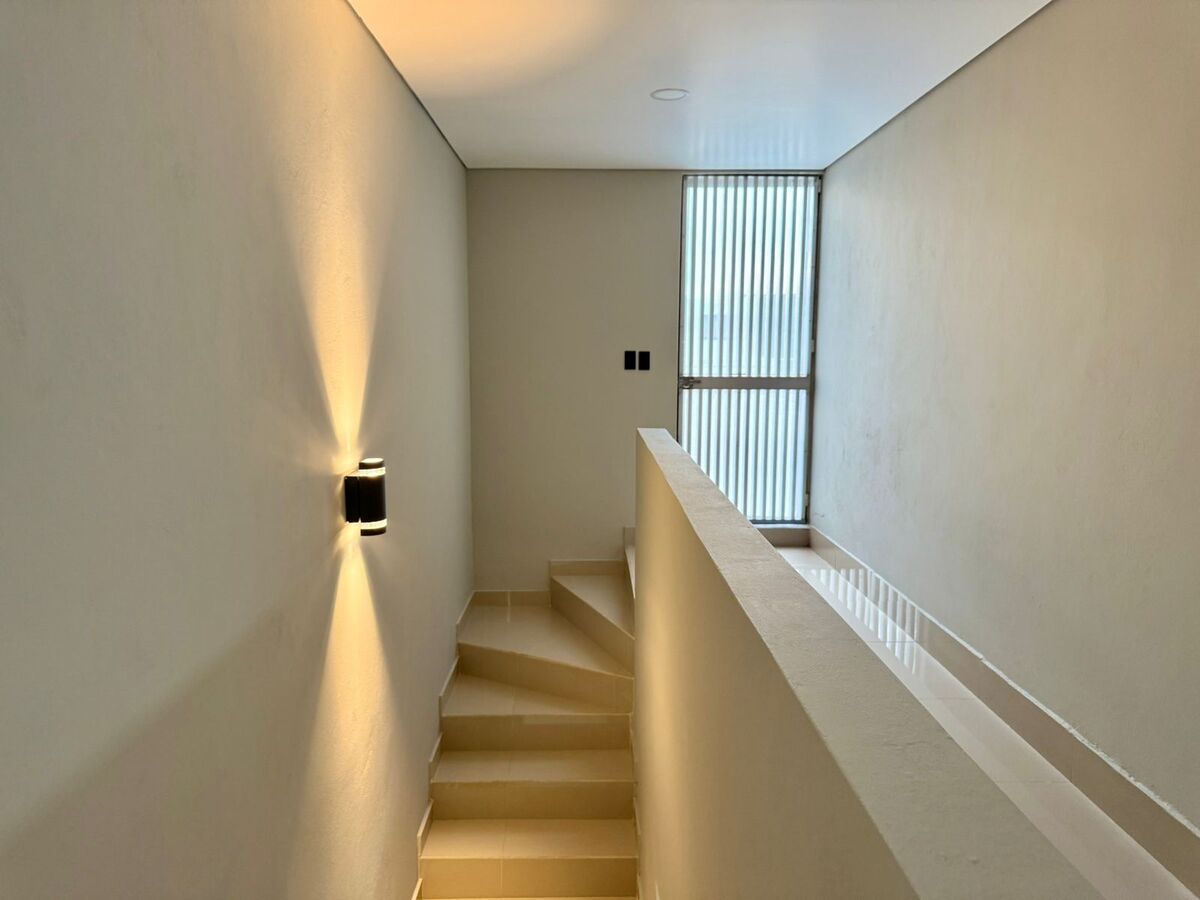 4 recámaras, una en planta baja, dos recámaras secundarias en planta alta que comparten baño y la recámara principal