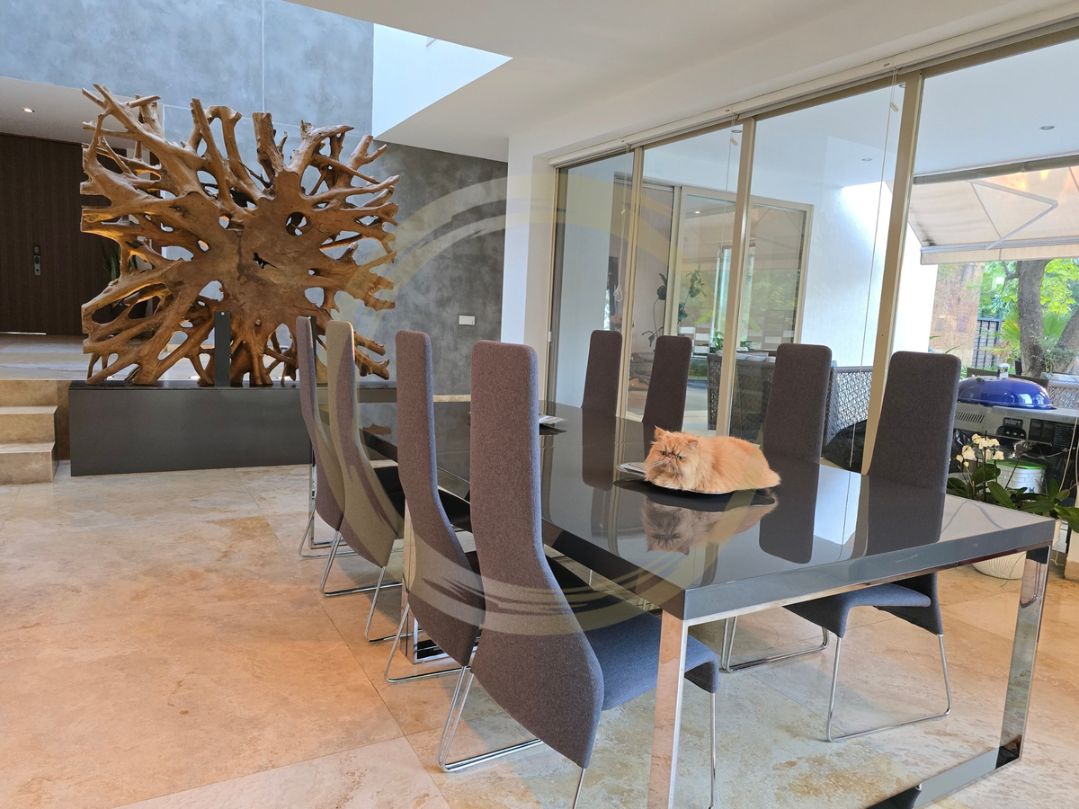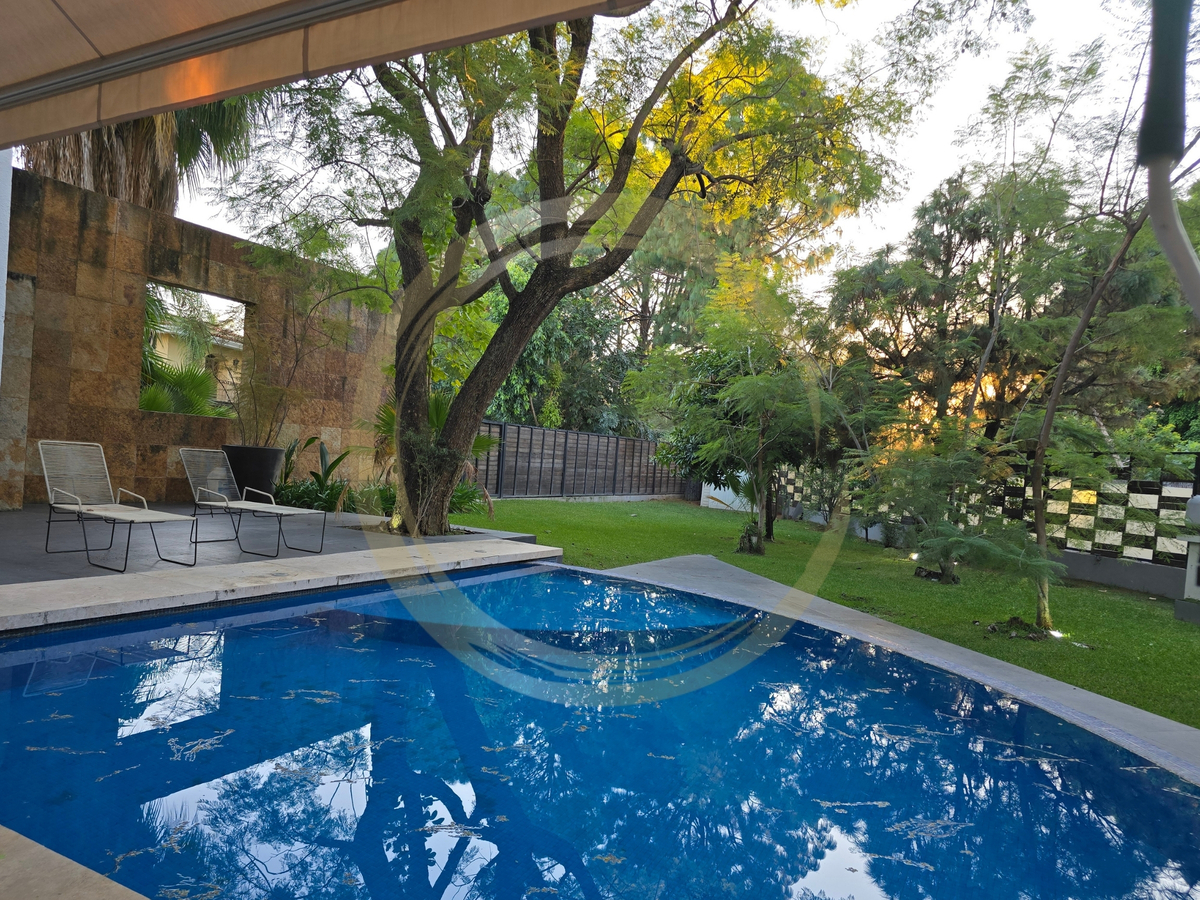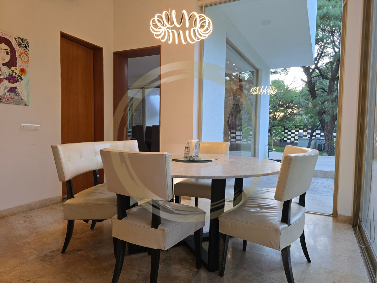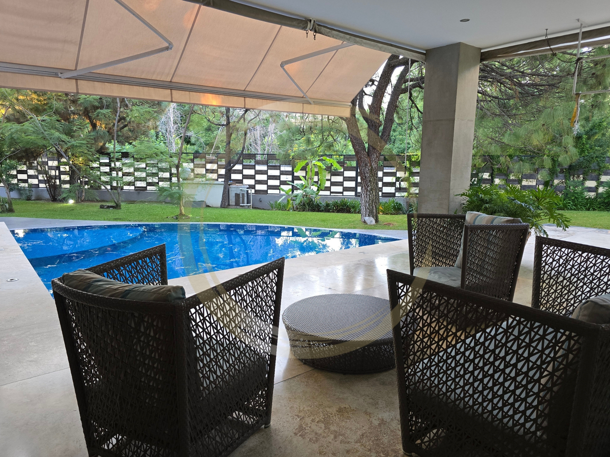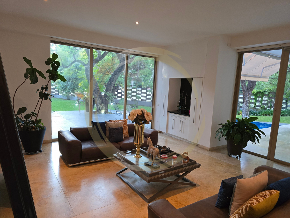 Sala y Comedor con vista panorámica a la alberca y jardín