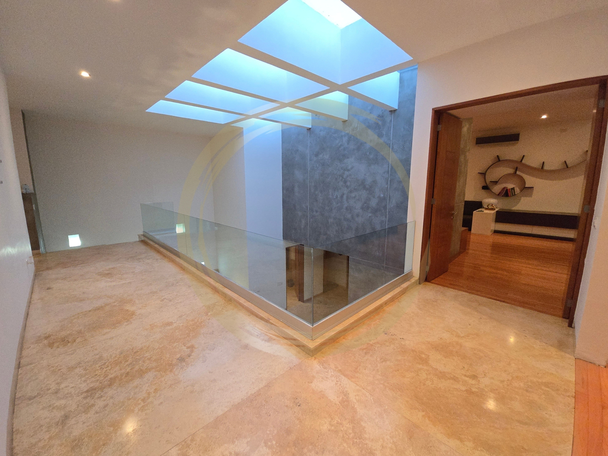Entrada a doble altura, diseñada con acabados de lujo y ventanales de piso a techo