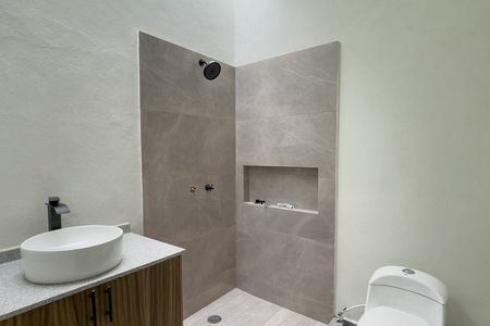 En su interior, encontramos 2 jardines interiores, 2 recámaras (principal con baño completo y vestidor), canceles de baño con cristal templado, aluminio negro, piso rectificado de 100 x 50 cm, cocina integral con barra de granito e isla, patio de servicio y otros detalles que resaltarán tu nuevo hogar.