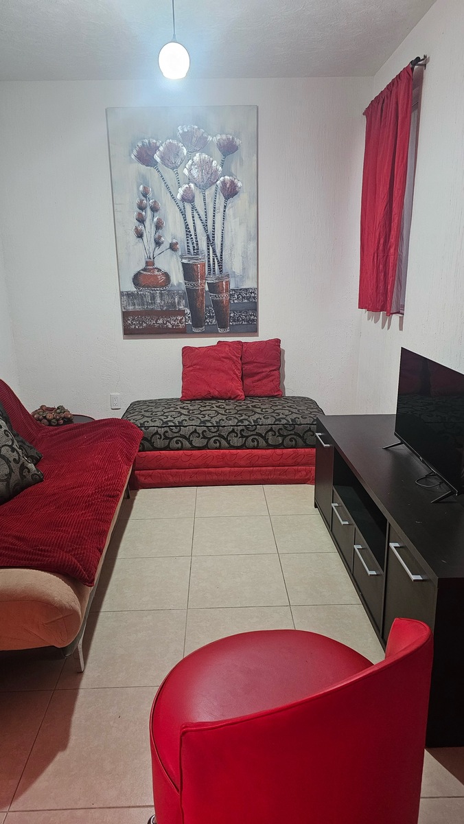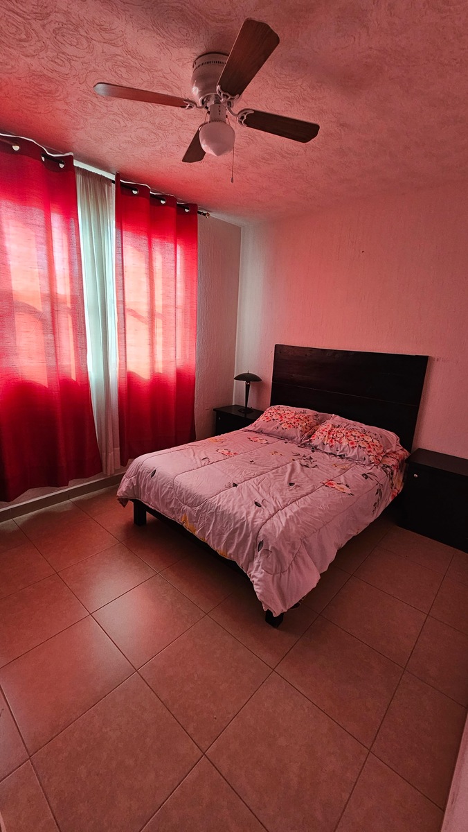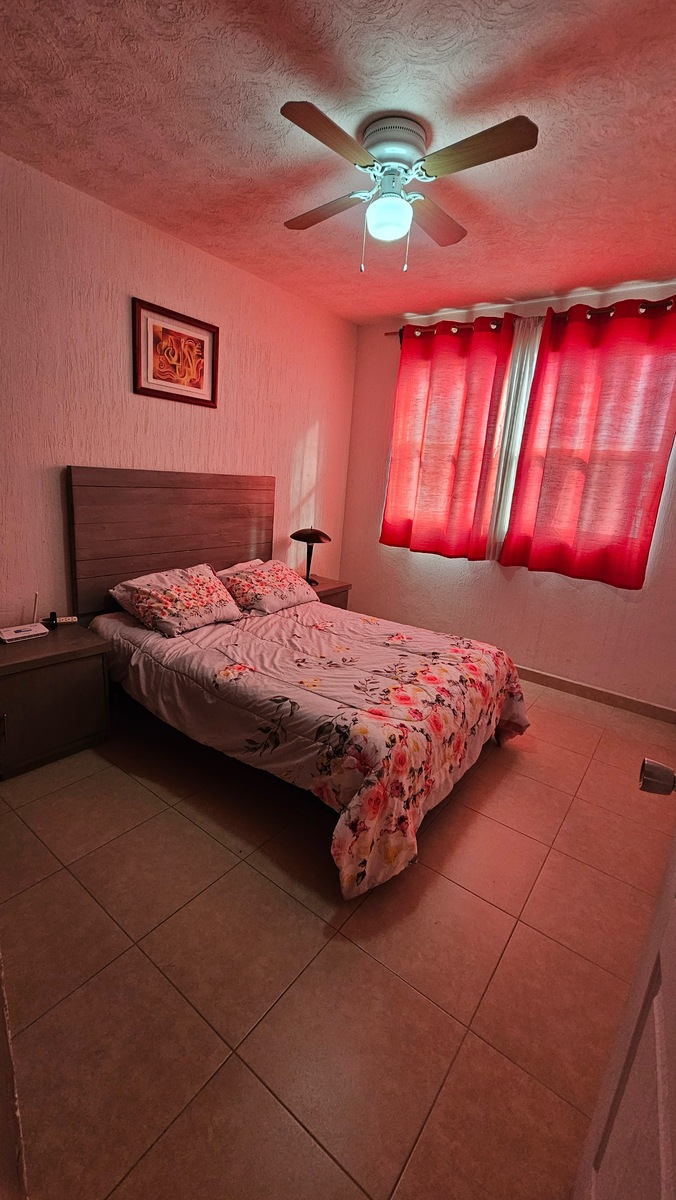 Casa tipo duplex ubicaba en planta baja, cuenta con un lugar de estacionamiento, dos amplias recámaras cada una con ventilador de techo y closets de piso a techo y de pared a pared, un baño completo, sala de TV o estudio o espacio para 3er. recámara., sala comedor, cocina integral.
