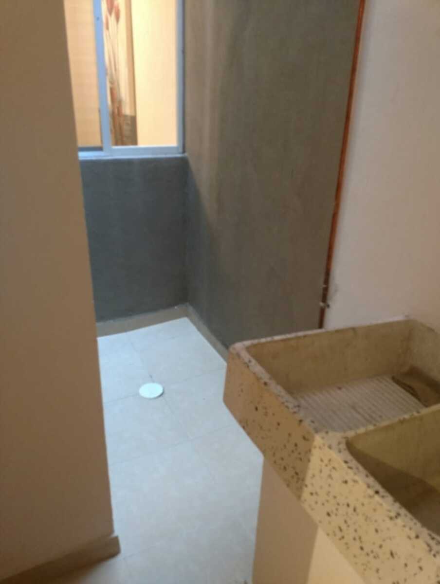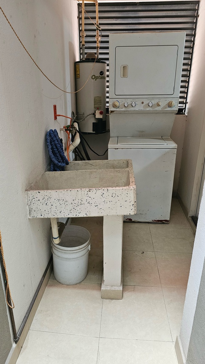Patio de servicio con lavadero e instalaciones para lavadora y secadora.