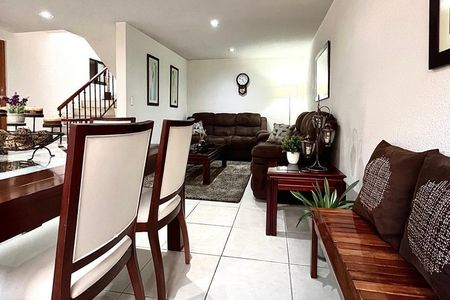 En el 1er piso tiene gran estancia con balcón para sala y comedor , cocina integral cerrada y medio baño de visitas. Medio piso arriba, se encuentran las 2 recámaras secundarias con closet que comparten el baño completo.