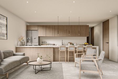 No 1º andar, há uma grande sala de estar com varanda para a sala e a sala de jantar, cozinha integrada fechada e um lavabo para visitas. Meio andar acima, encontram-se os 2 quartos secundários com armários que compartilham o banheiro completo.