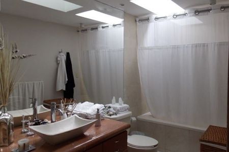 No andar térreo, há 2 vagas de estacionamento, uma sala de TV, uma lavanderia e um quarto de serviço com banheiro completo.