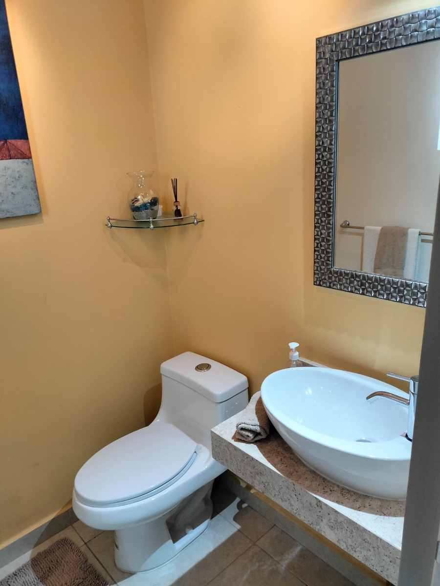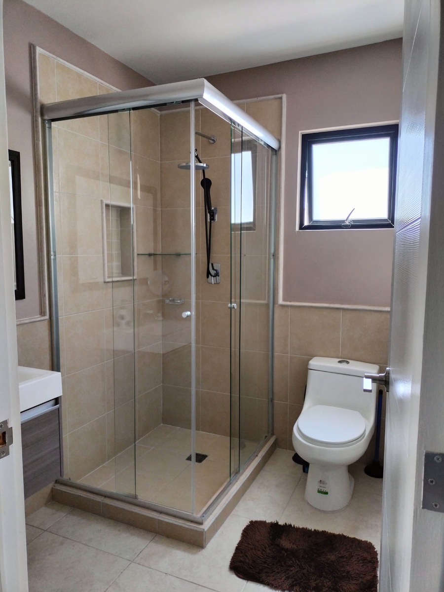 Recámara principal con baño completo, clóset y una pequeña terraza.