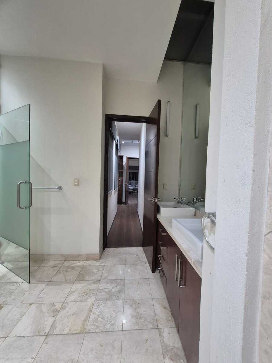 Alturas Considerables, Sala de TV con Vista hacia el exterior, 3 RECÁMARAS, las secundarias tiene tapancos, todas con Vestidor y Baño Completo. La principal tiene ademas closet adicional, Canceleria de Cristal en Regaderas en todos los baños. Maderas de ingenieria en Recámaras, Closet de blancos.