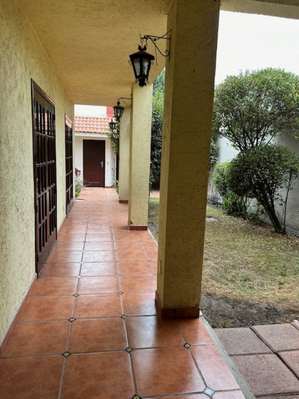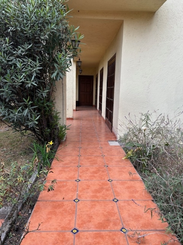 A la entrada de la casa un agradable corredor que nos lleva a la puerta principal pasando por el ventanal de la sala y rodeado de áreas verdes.