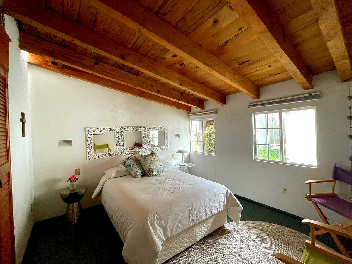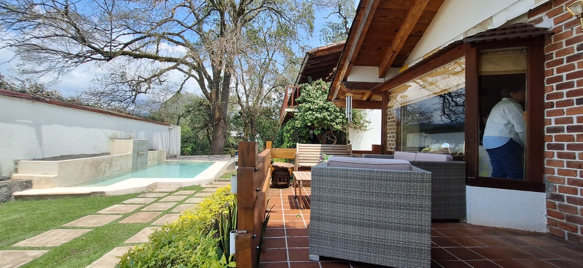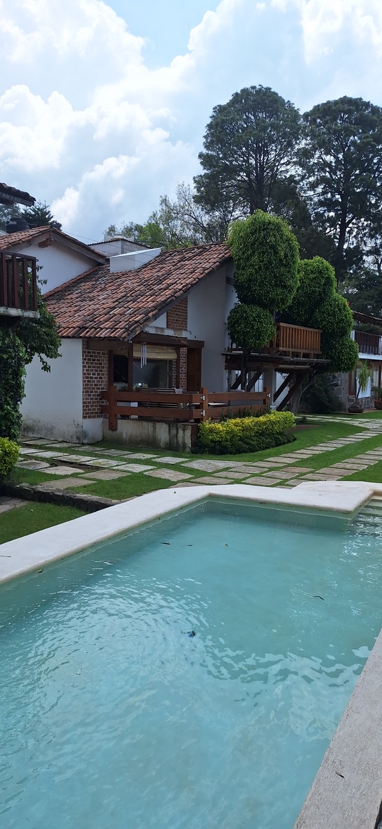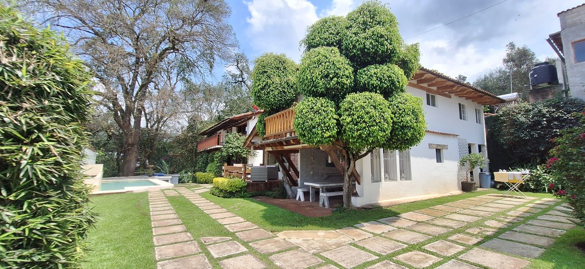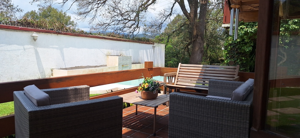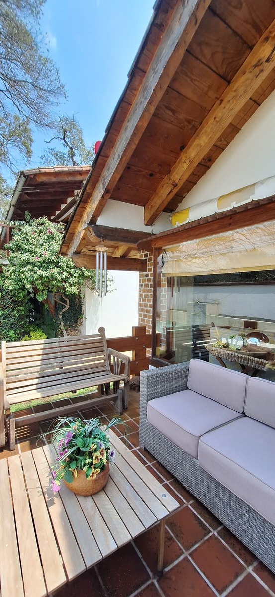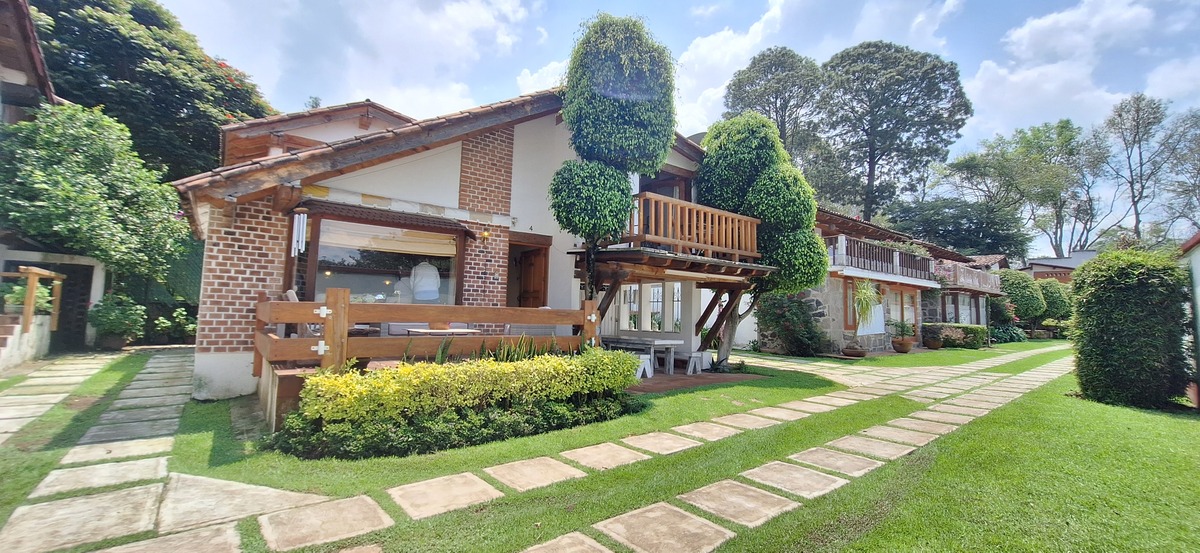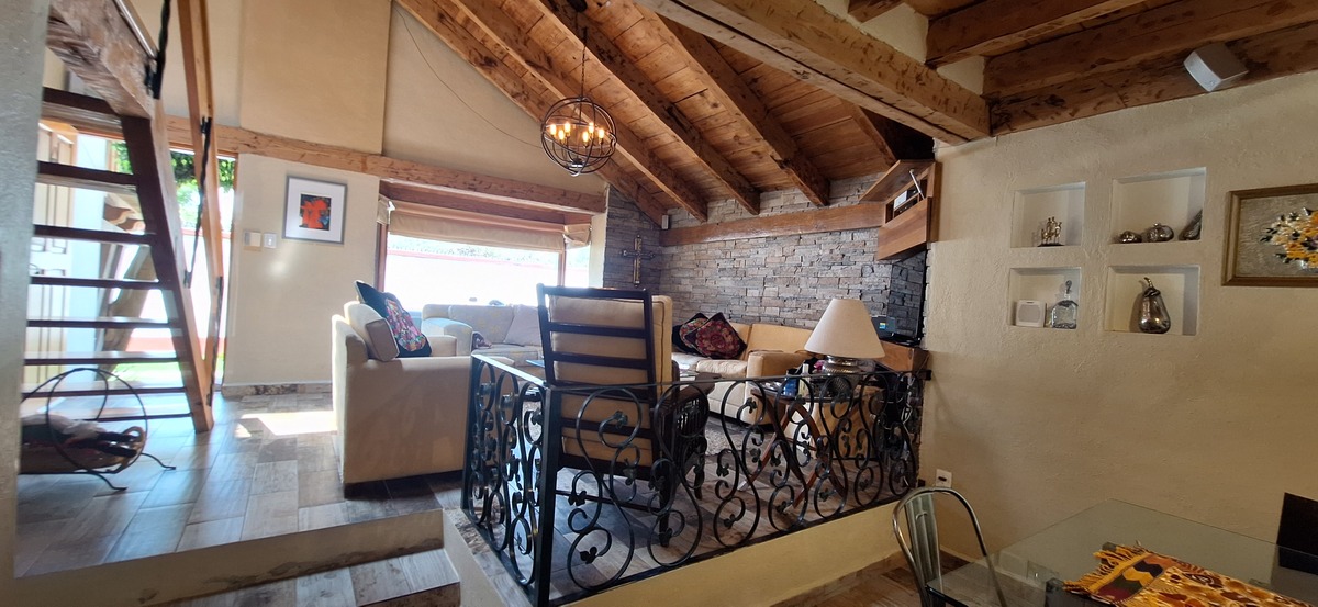 Linda casa em estilo vallesano com acabamentos rústicos em madeira e barro, localizada em um condomínio exclusivo de apenas 5 casas, em uma rua tranquila e a poucos minutos do centro de Valle de Bravo, escolas e comércios.