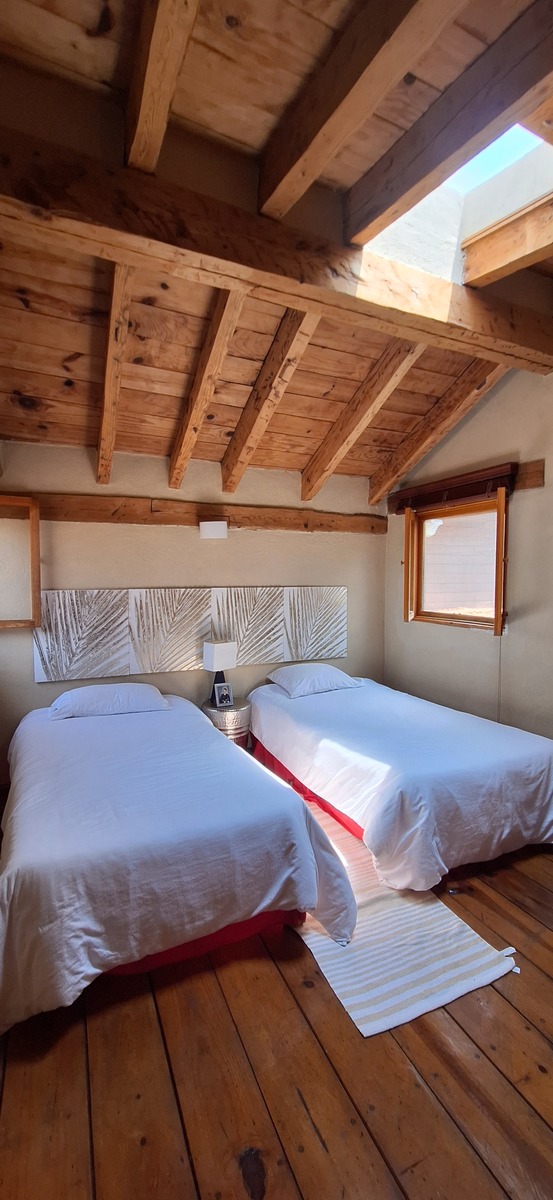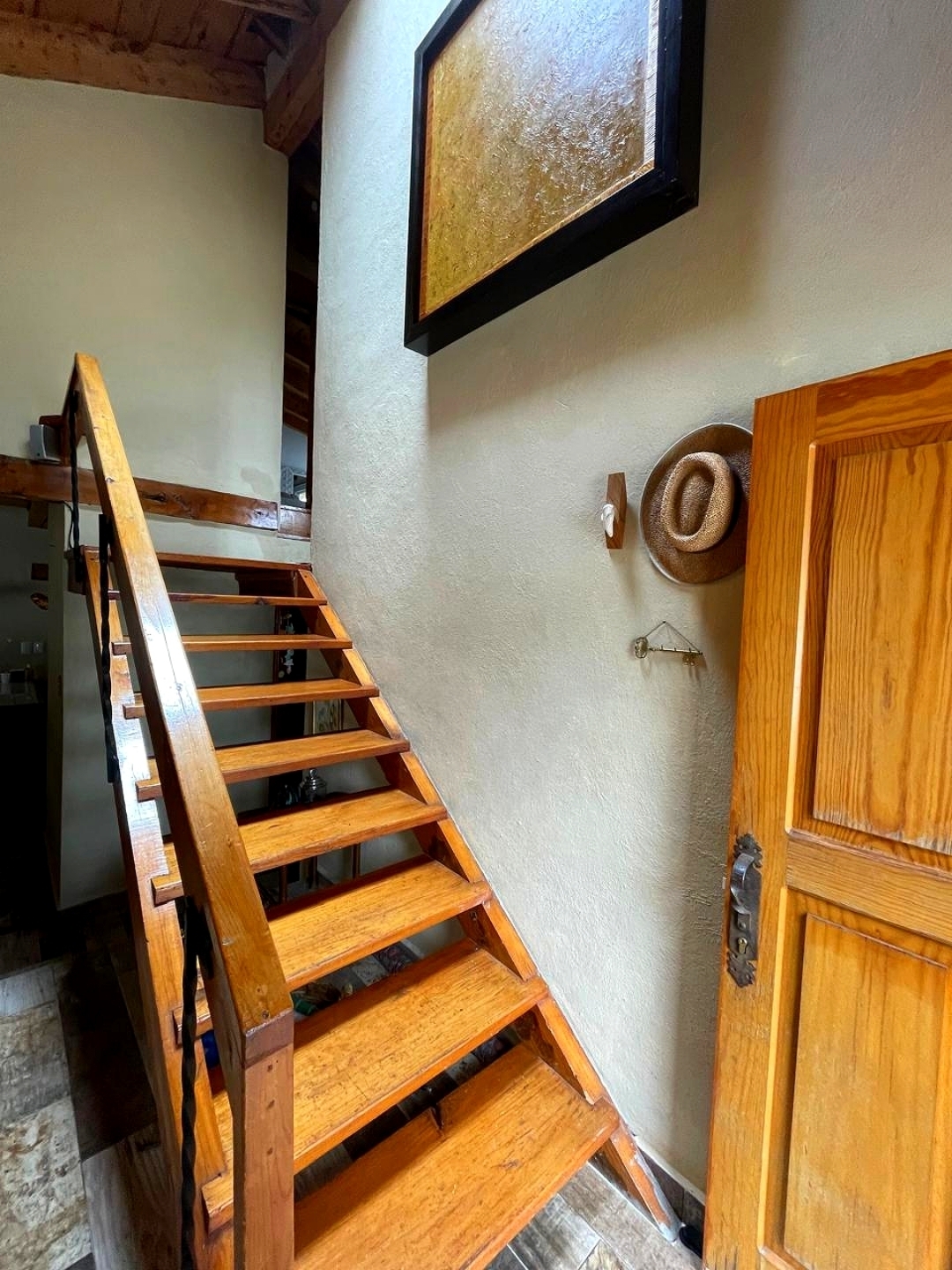 Escalera y entrepisos de madera que realzan el ambiente cálido y tradicional de la casa.