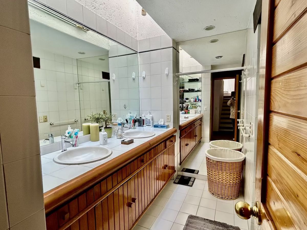 A medio nivel para abajo encuentras 3 recámaras secundarias con 2 baños completos, con vistas al jardín.