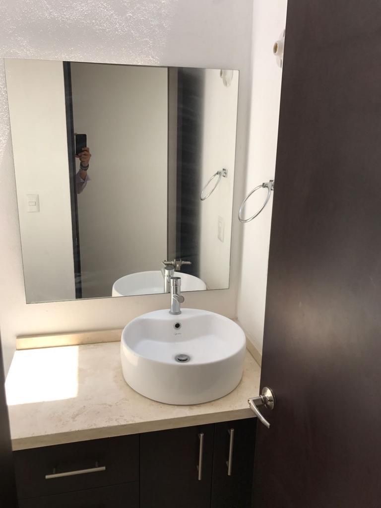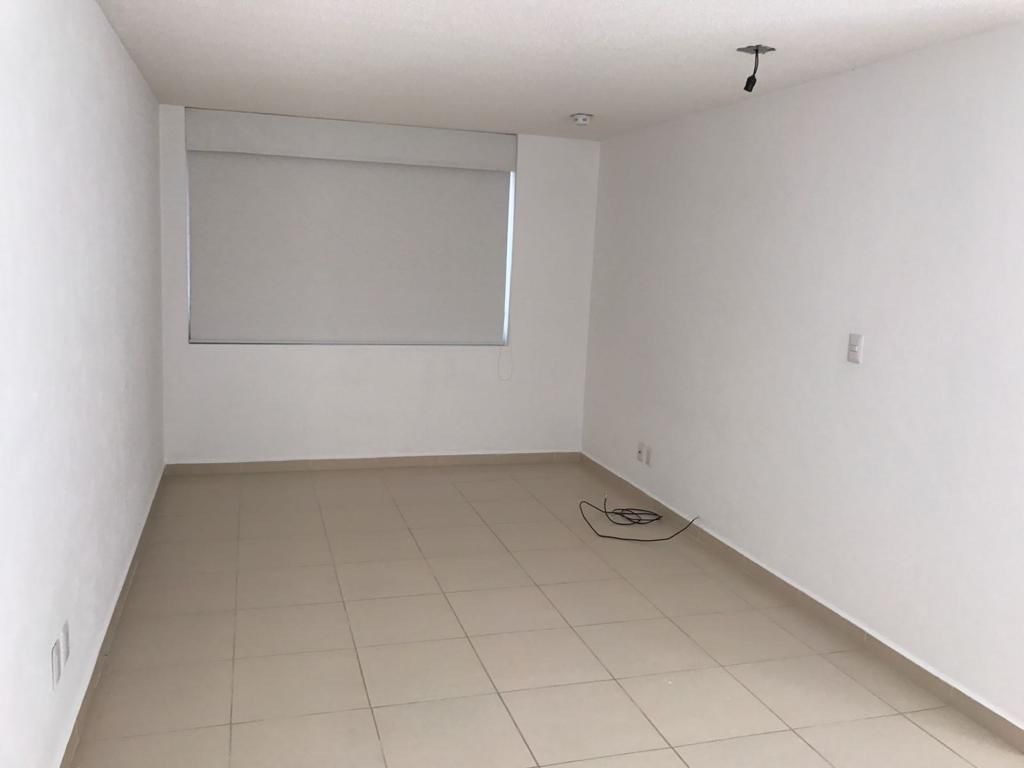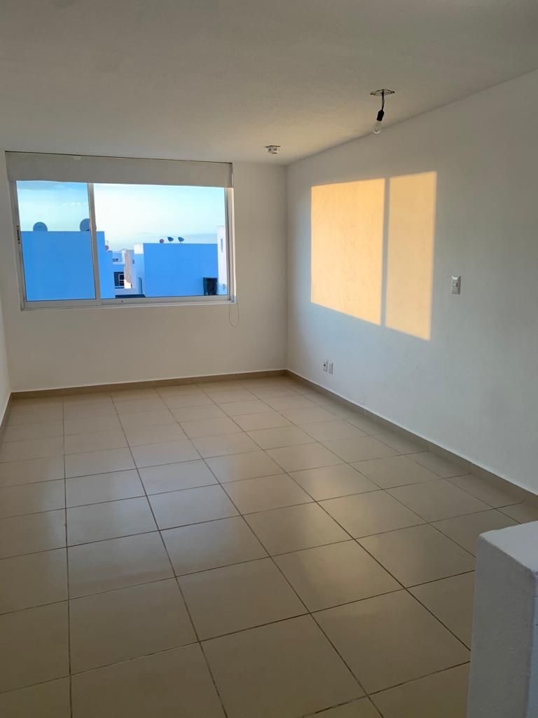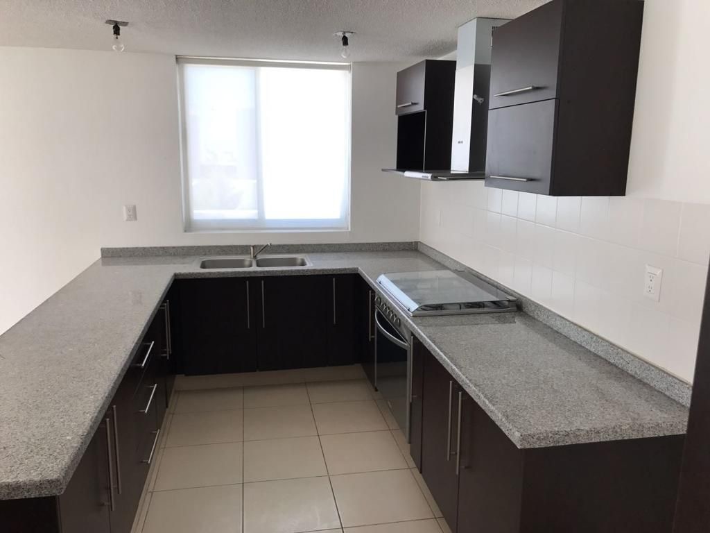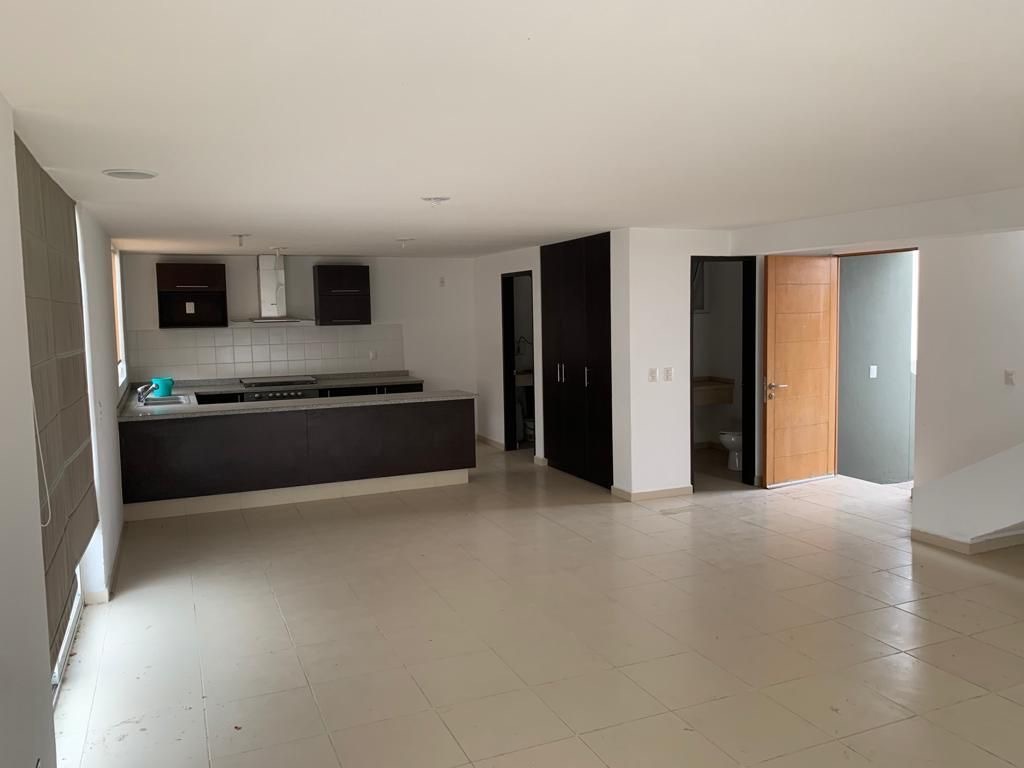 Cocina con barra, sala, comedor, medio baño y amplia terraza. Cuarto de lavado.