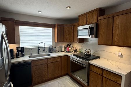- - Cocina y barre a base de melamina de alto brillo y combinada