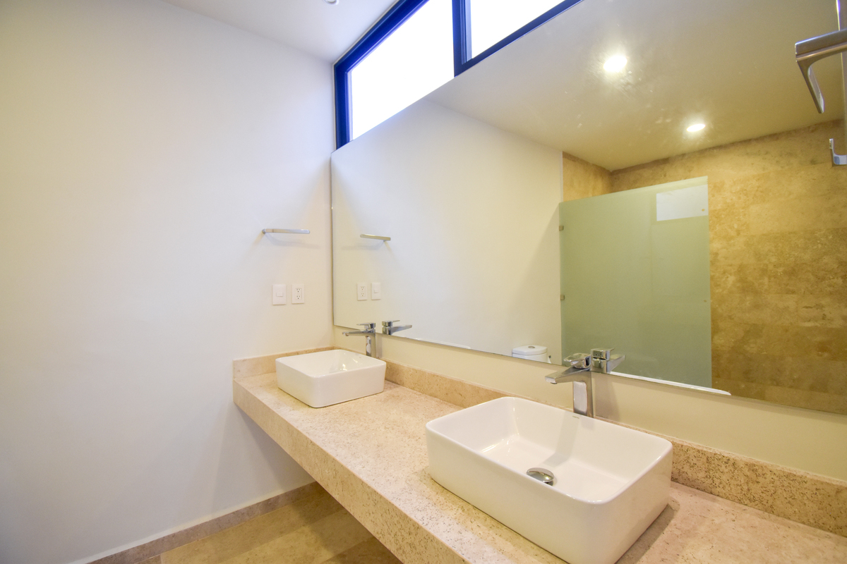 Planta alta: 2 recámaras secundarias con baño y clóset vestidor, recámara principal con baño completo y amplio clóset vestidor.