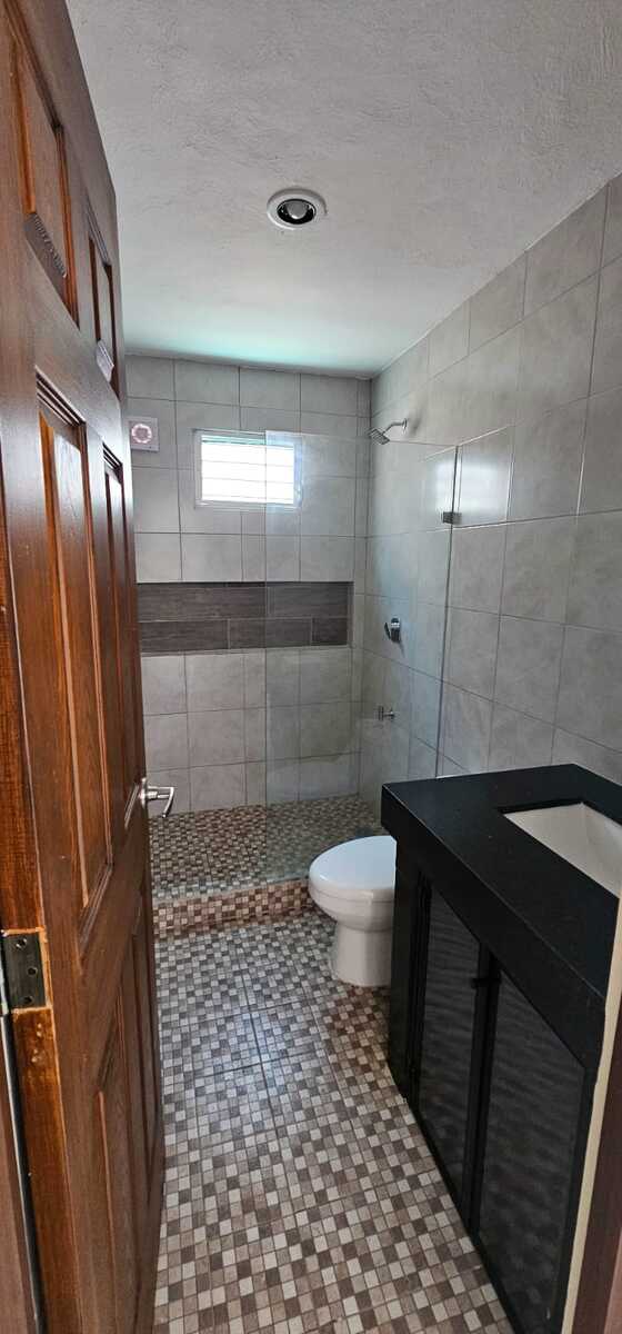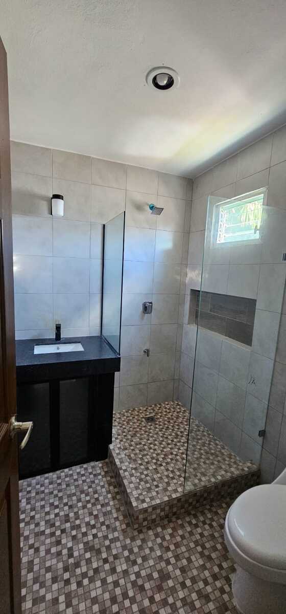 - Baños c/ cubierta de granito, monomando en lavabo y regadera, cancelería de vidrio templado
