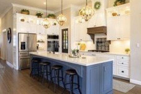 - Isla de cocina forrada de granito y mármol